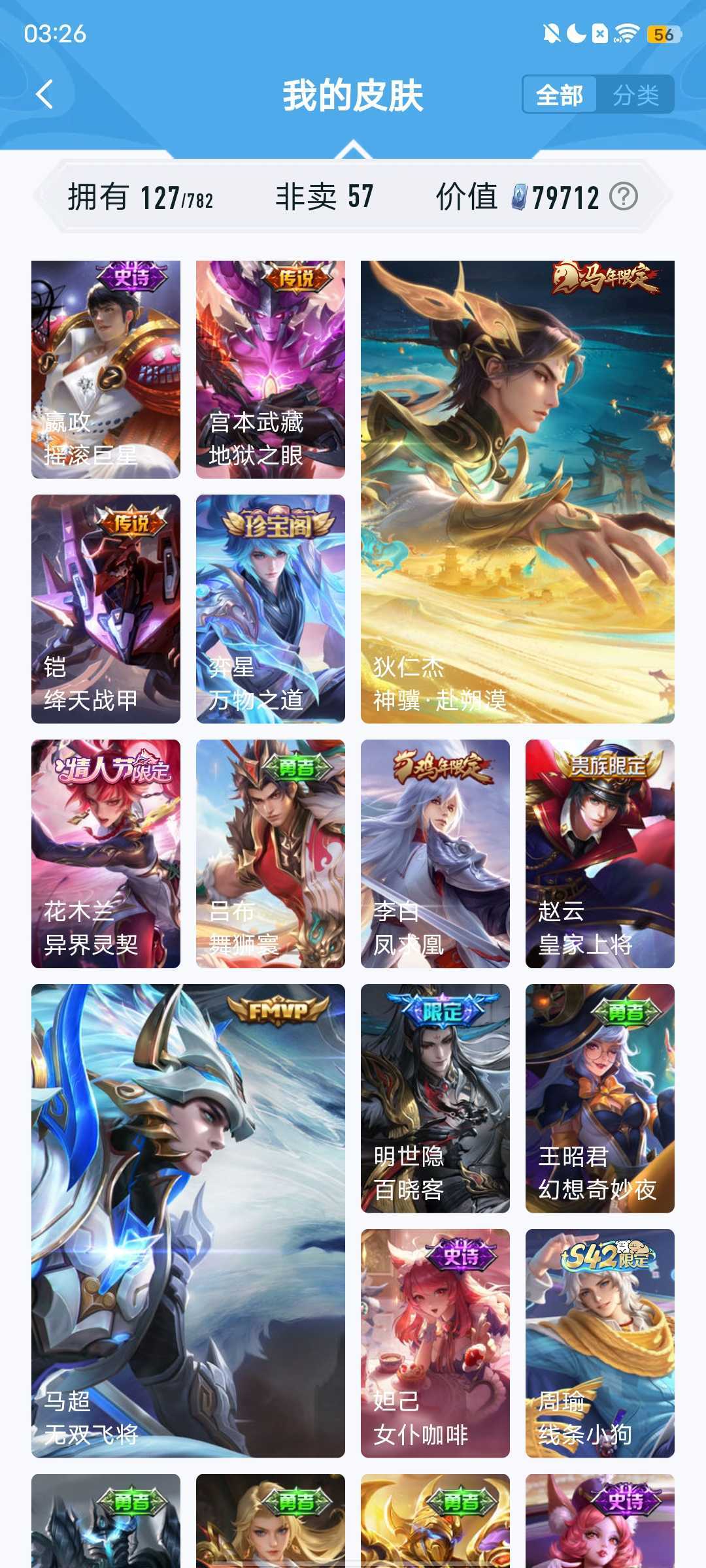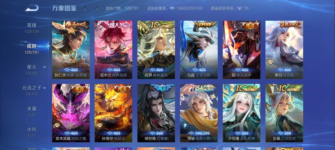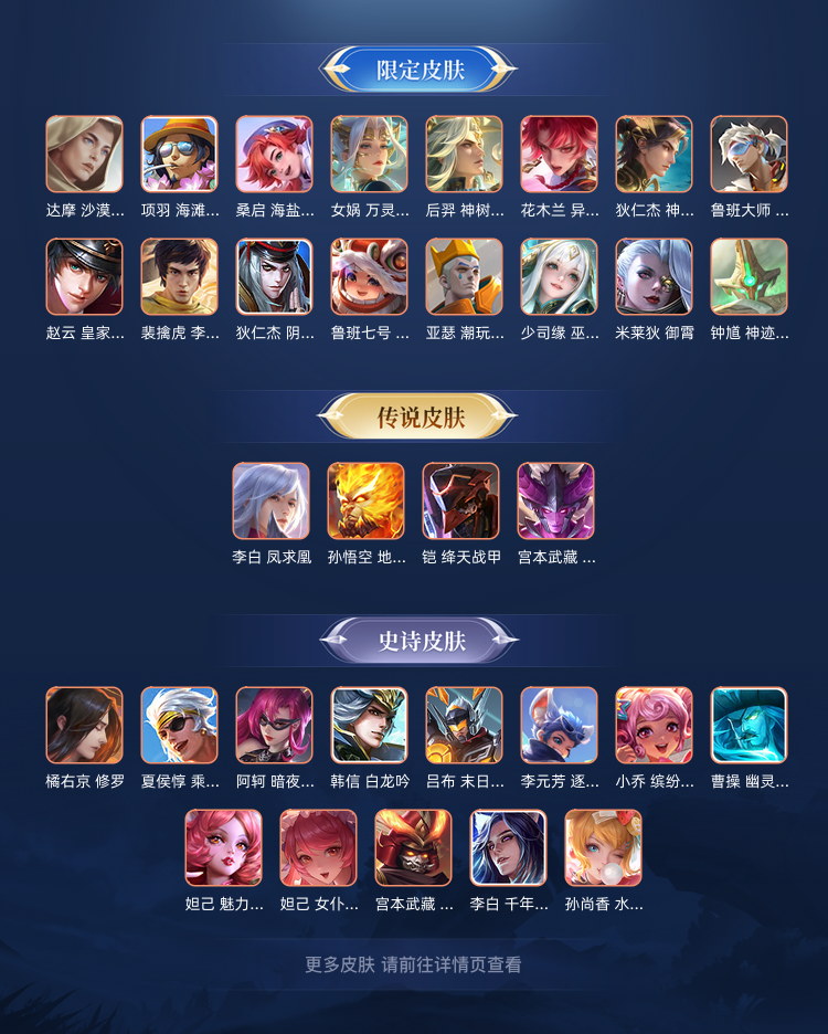 经典勇者皮:亚瑟玩偶,街头霸王,达摩拳皇,曹操-死神来了,程咬金-华尔街大亨,几乎每个英雄都会配个皮肤,主流物理法术铭文全部五级150