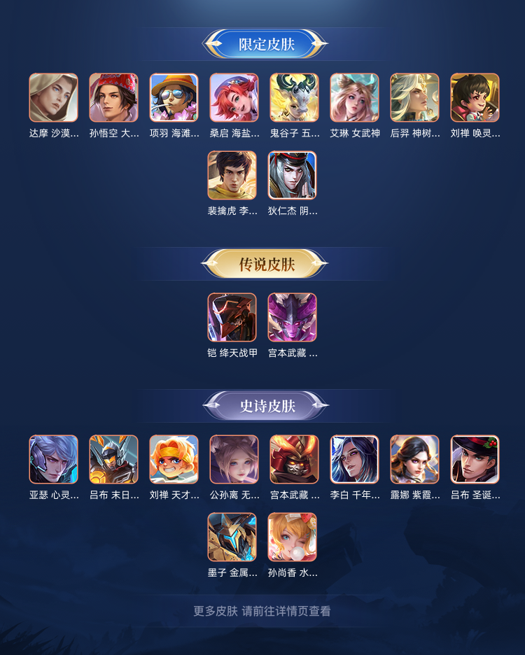 凯-绛天战甲 镜-炽阳神光 澜-逐花归海 孙悟空-大圣娶亲 干将莫邪-久胜战神 露娜-紫霞仙子
