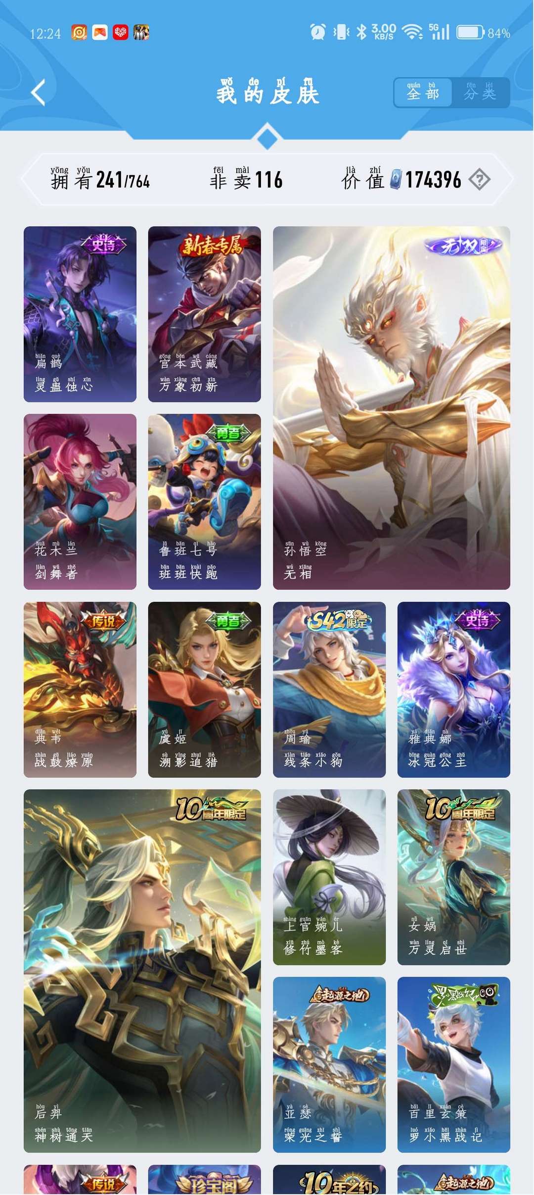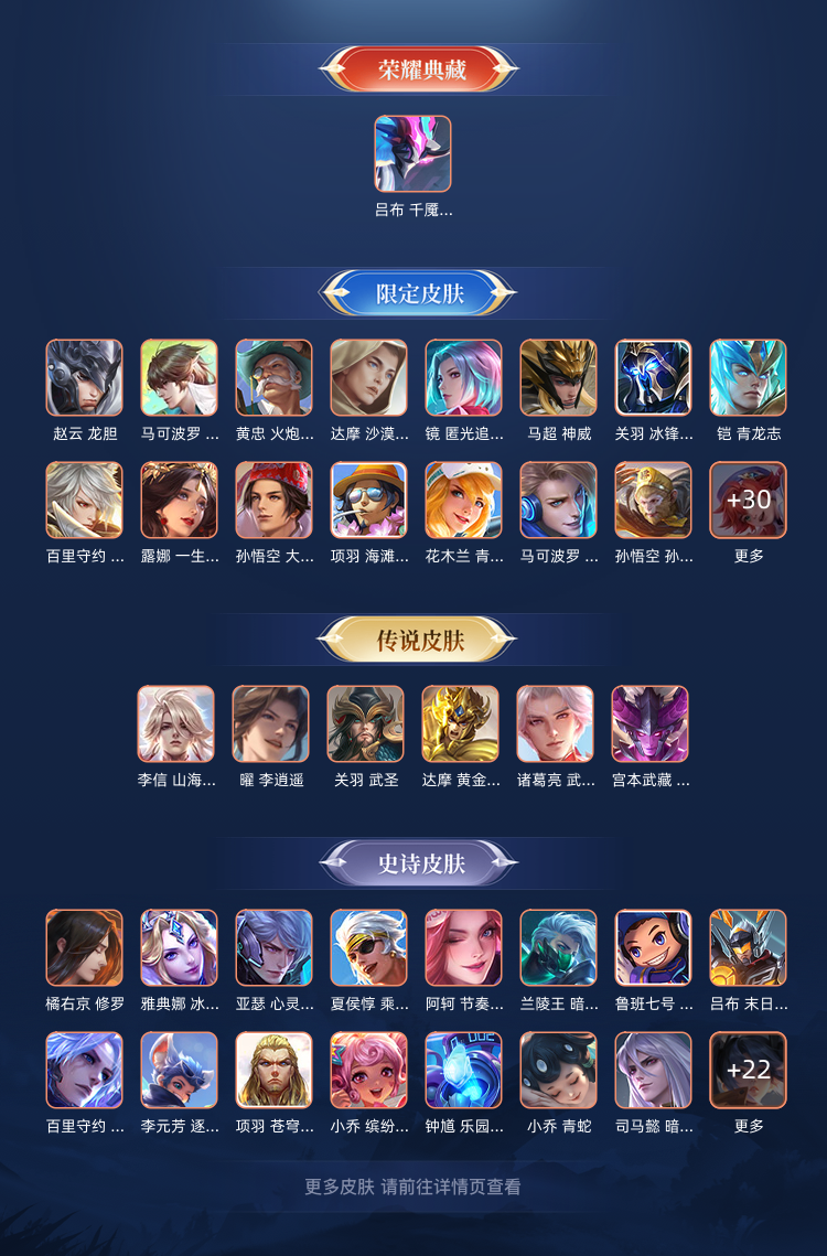 贵族V7 猴子无双 关羽武圣 冰封战神 李信兔年限定 孙策龙年限定