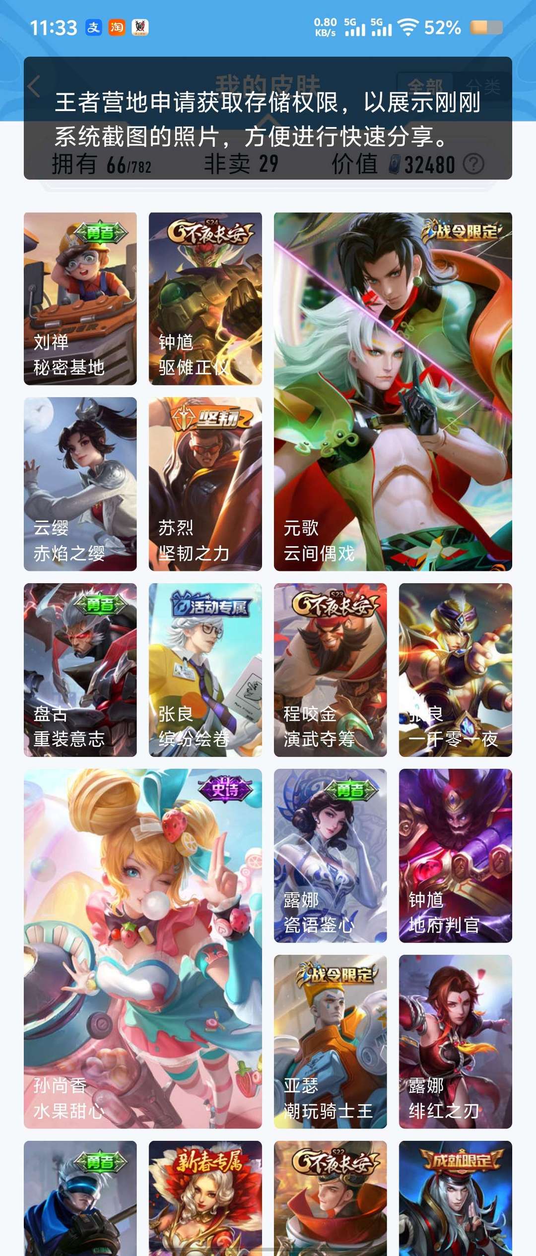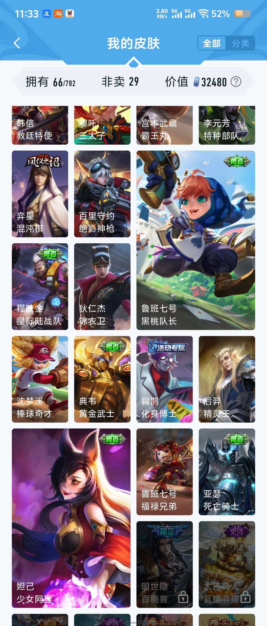 66皮v3橘右京修罗达摩拳王猪八戒少司缘艾琳夏侯惇战争骑士元歌无心孙尚香水果甜心