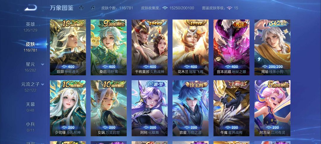 干将FMVP,花木兰FMVP,宫本地狱之眼星传说,无敖隐嬴政武则天,史诗级皮肤如下