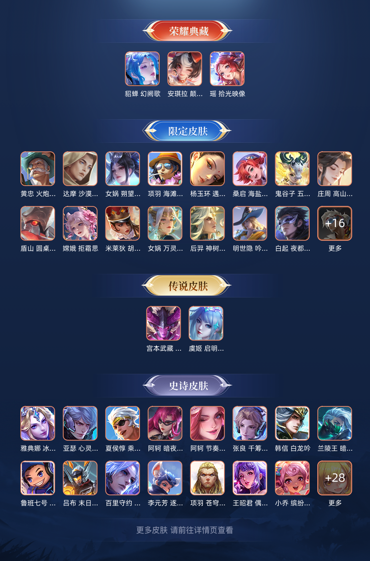3典藏皮肤 貂蝉 安琪拉 瑶妹 4传说 史诗皮肤111
