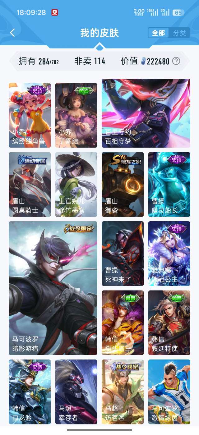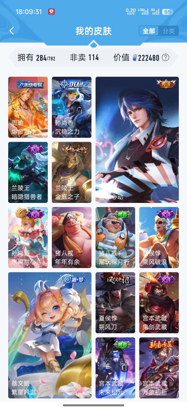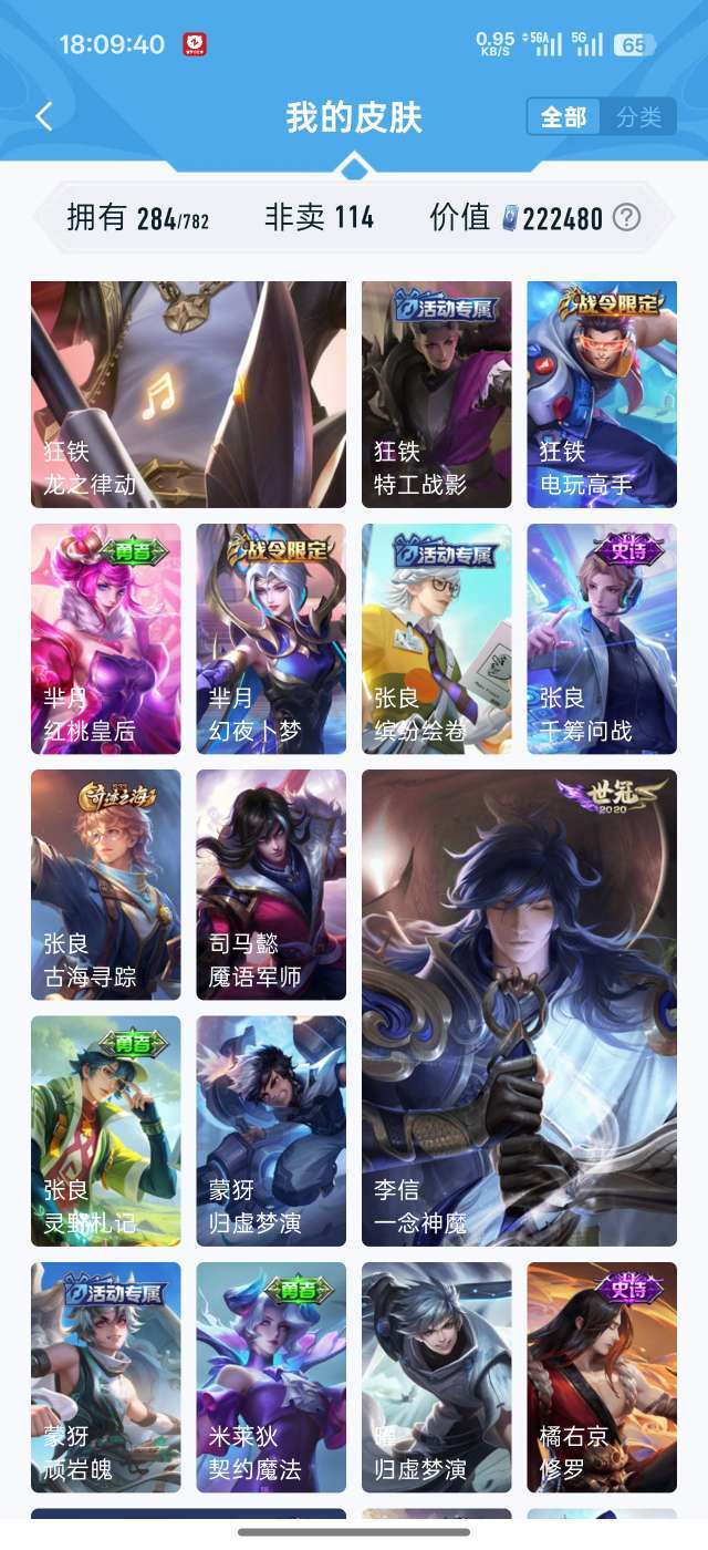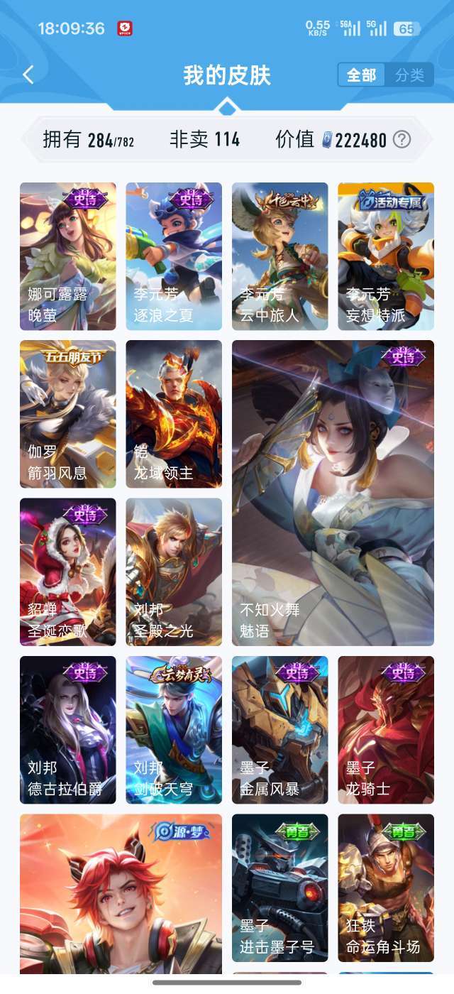 吕布虞姬典藏 284个皮肤94个史诗