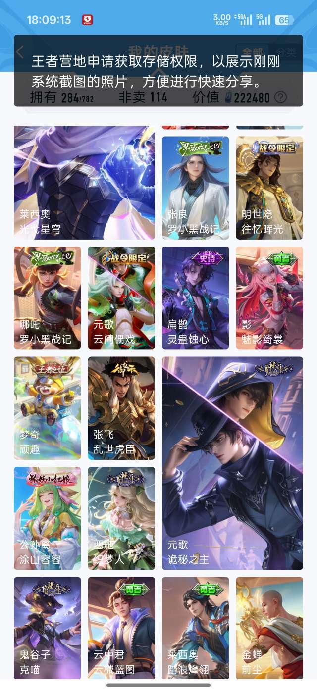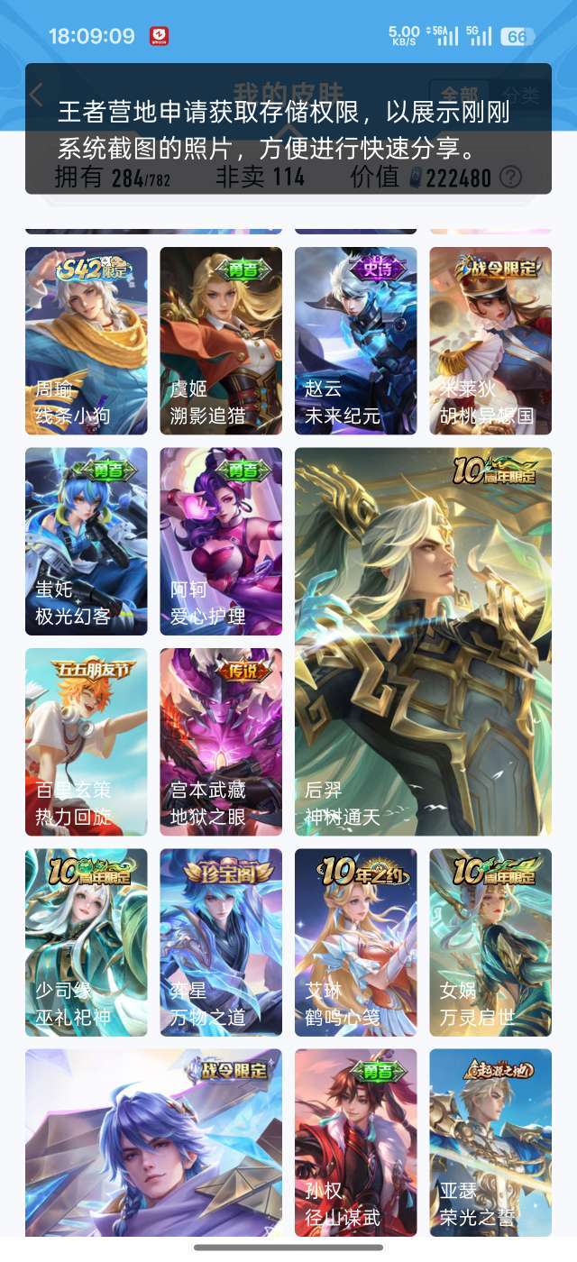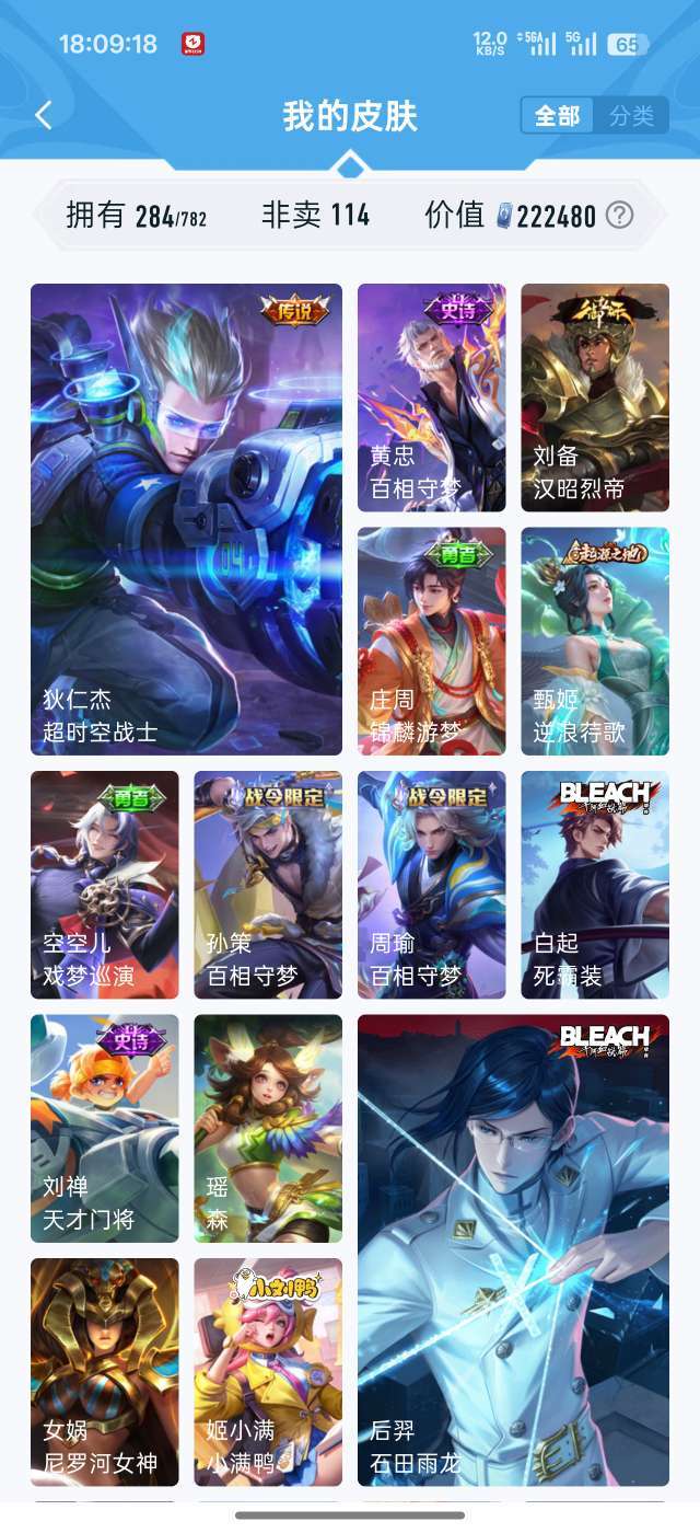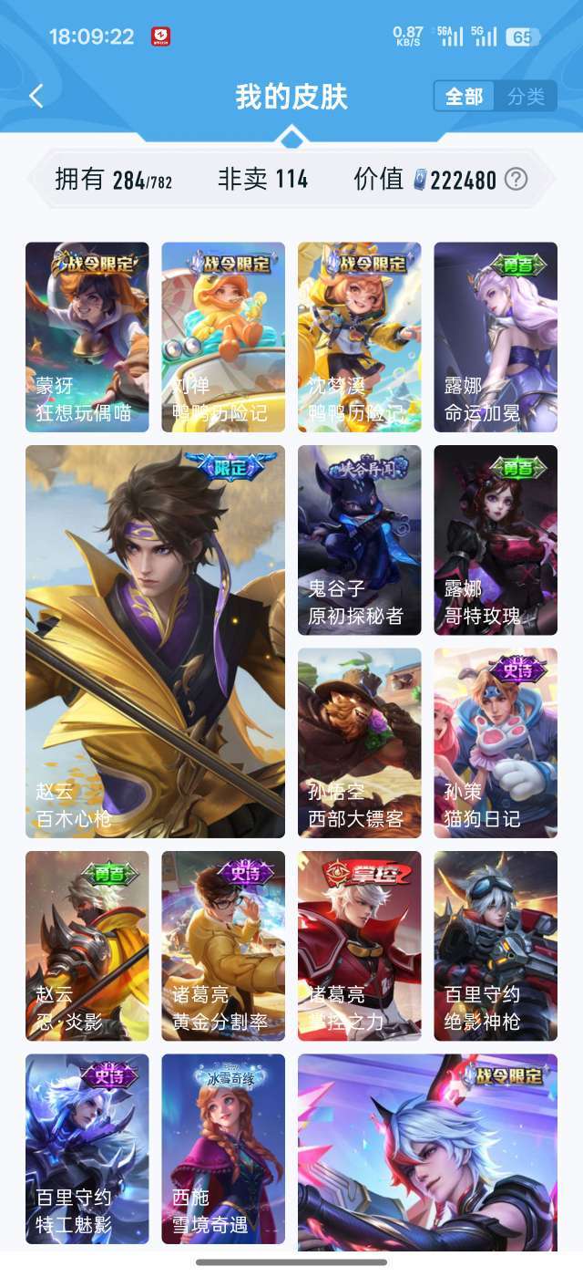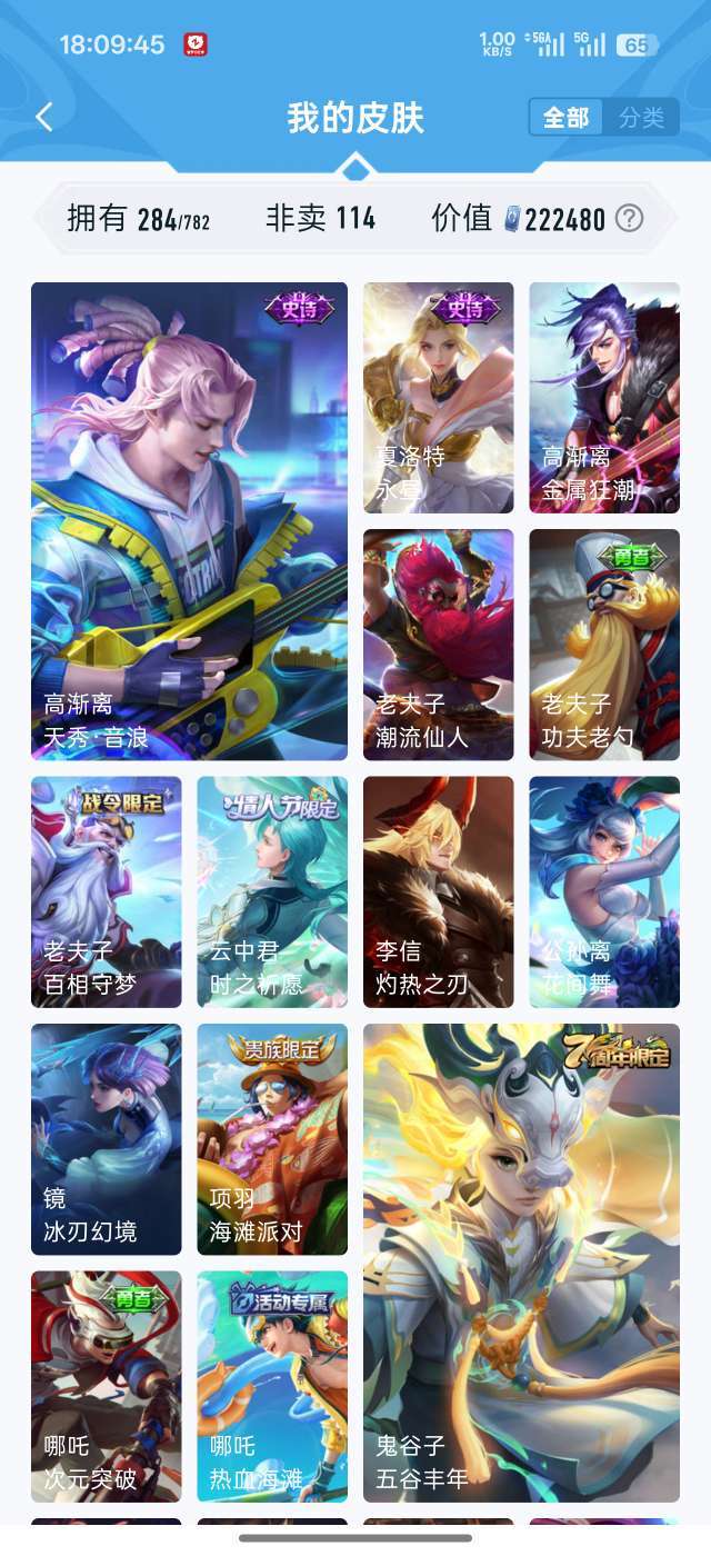 吕布虞姬典藏 284个皮肤94个史诗