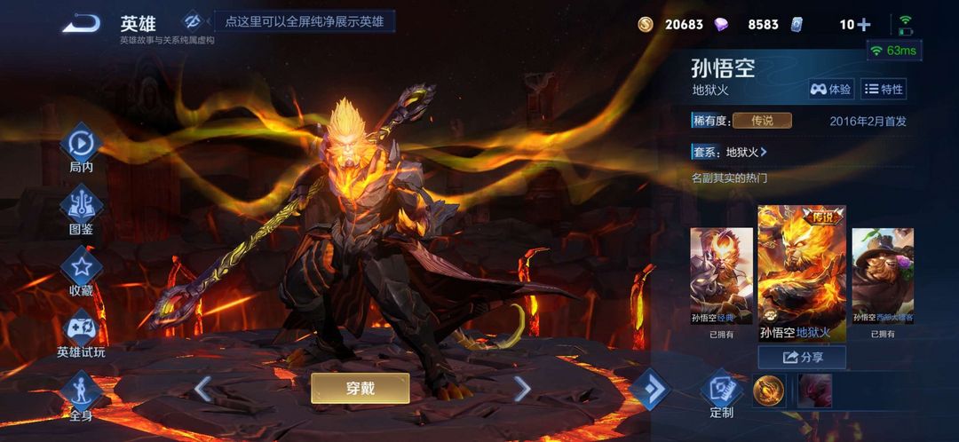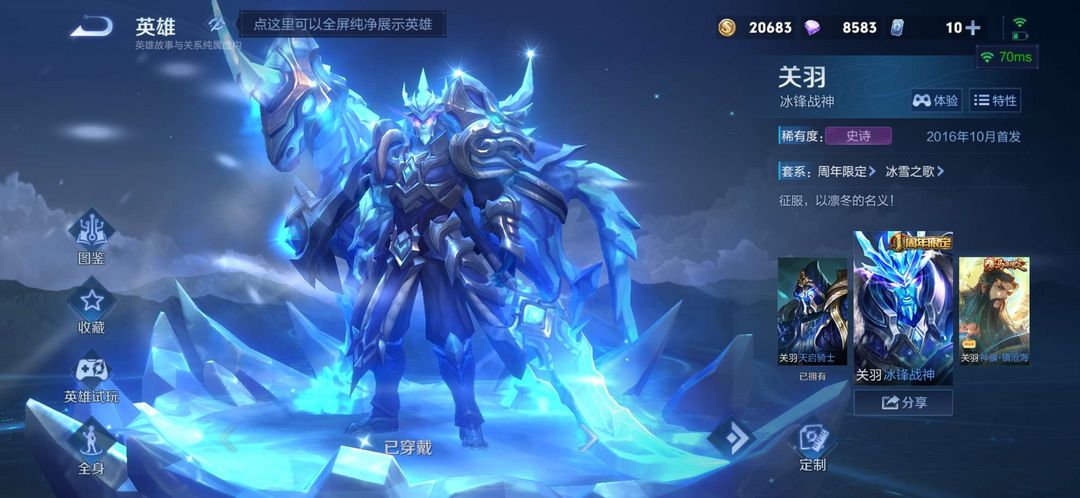 全英雄★满铭文★冰封战神★凤求凰★至尊宝★地狱火★还有好多皮肤