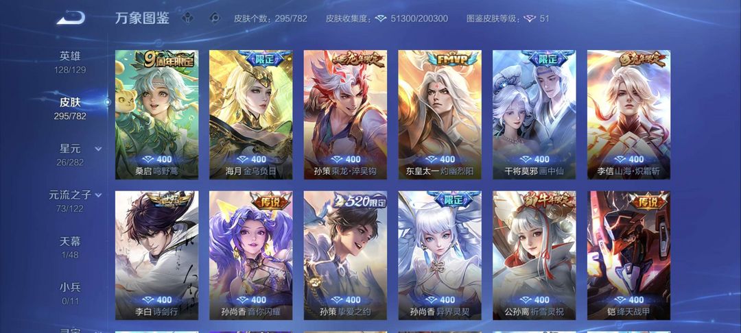 三个典藏最初的交响,千魇归渊,弑枪猎影,一个李信无双问心剑,三个珍品瑶大耳狗之梦,嫦娥,孙策
