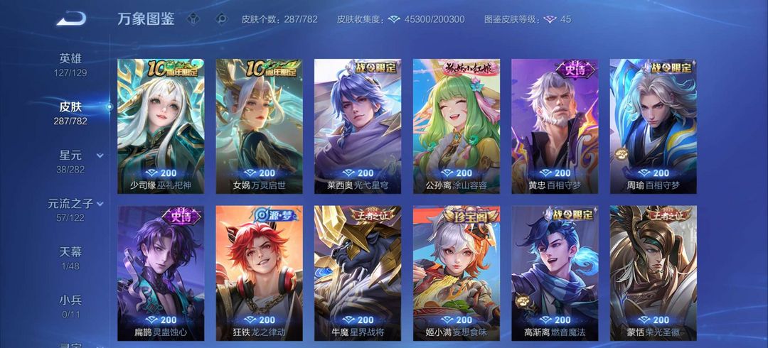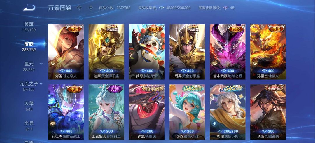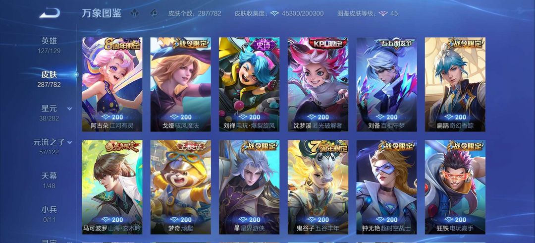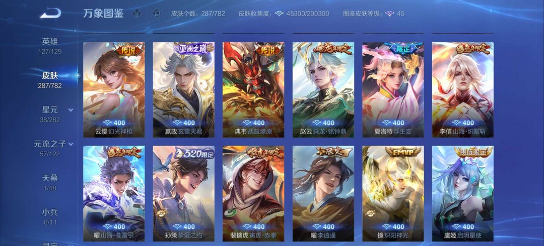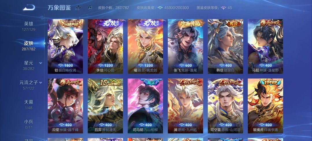 凯荣耀典藏、李逍遥、至尊宝、李信和曜无双、张飞珍品传说、马超云樱年限…