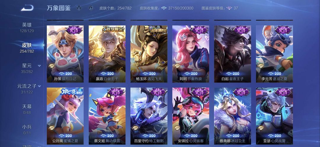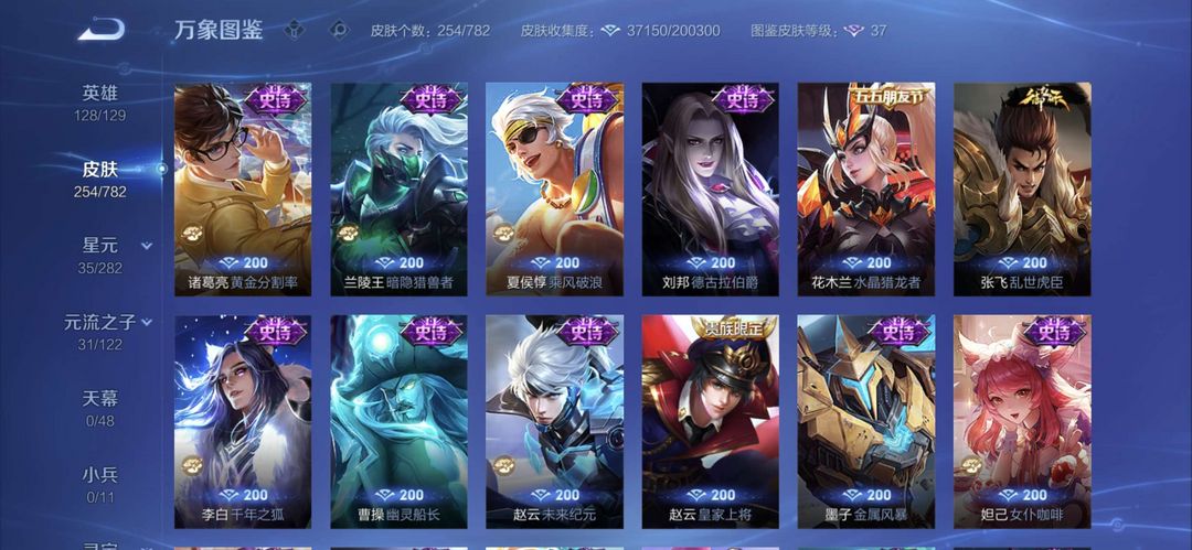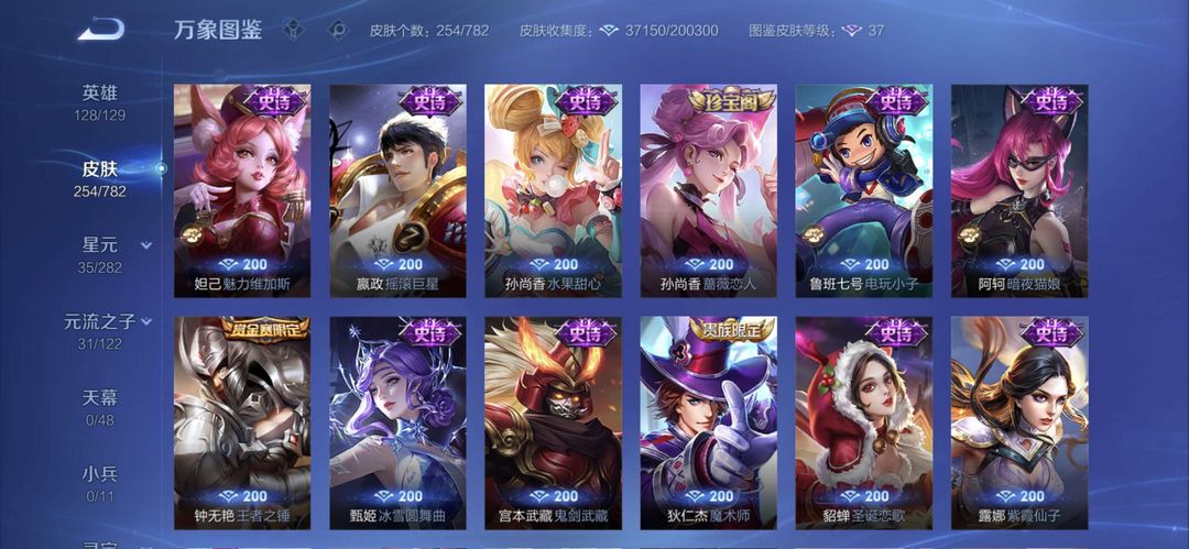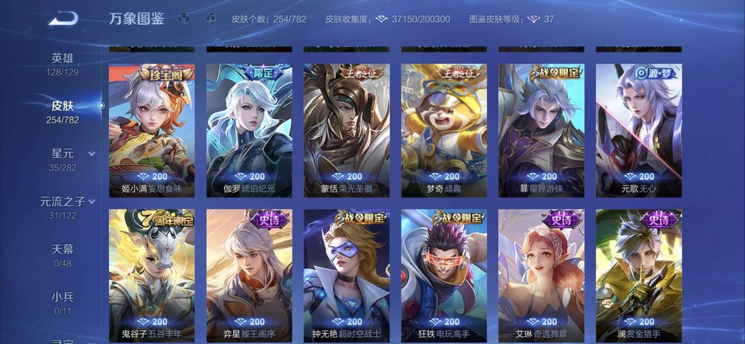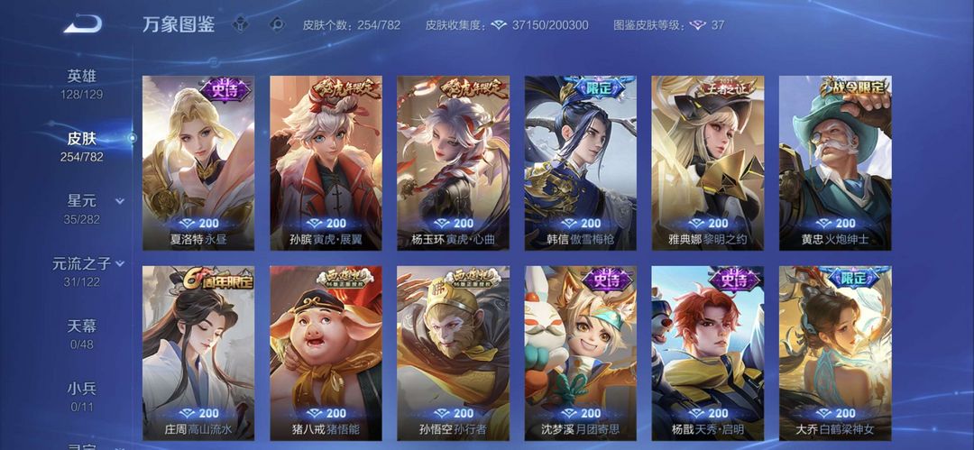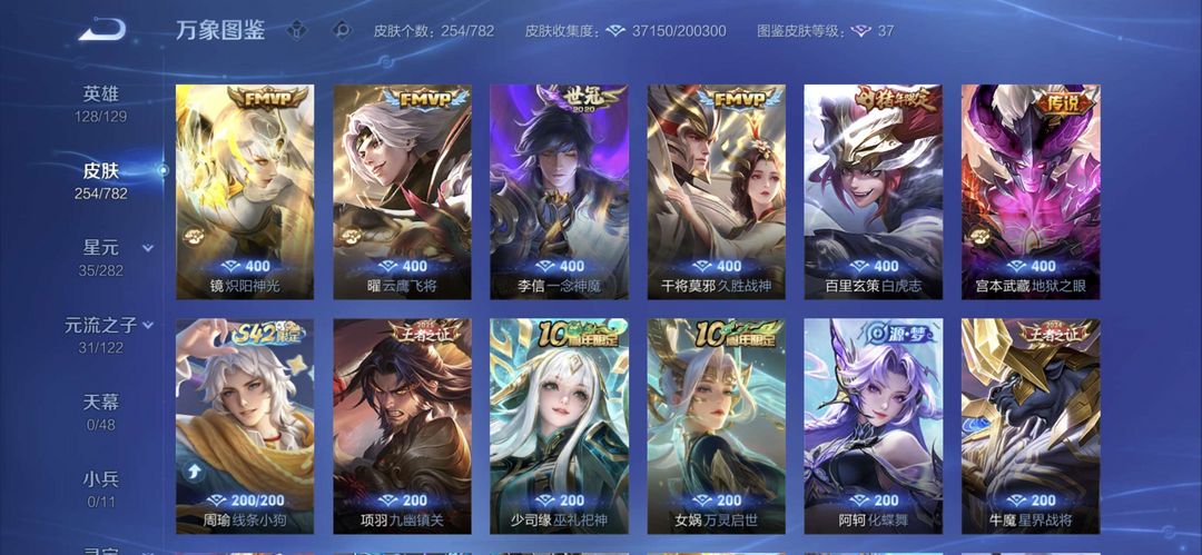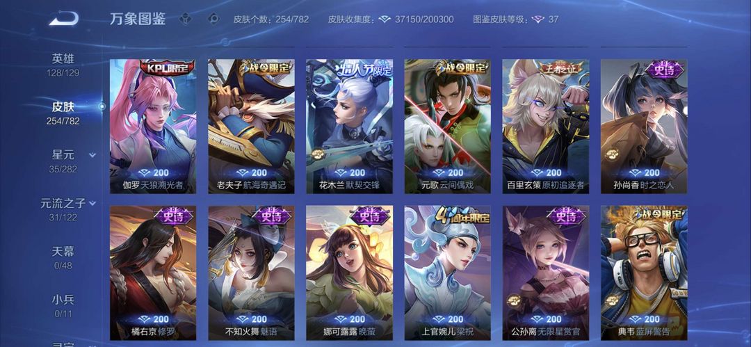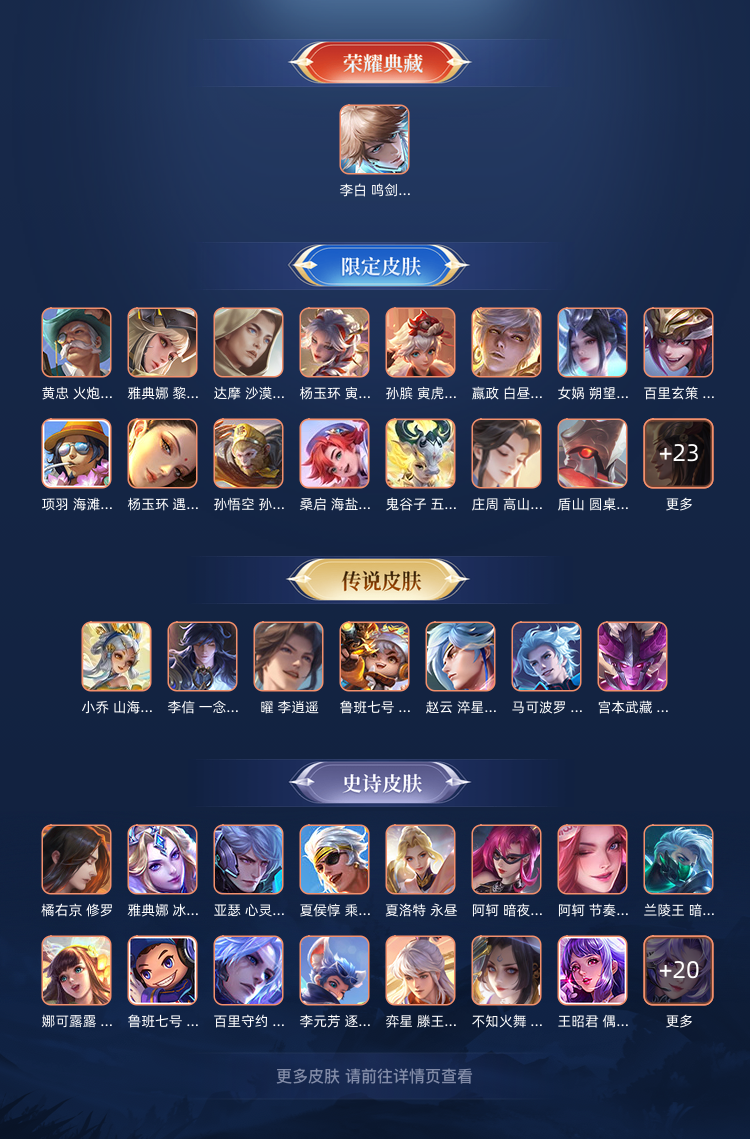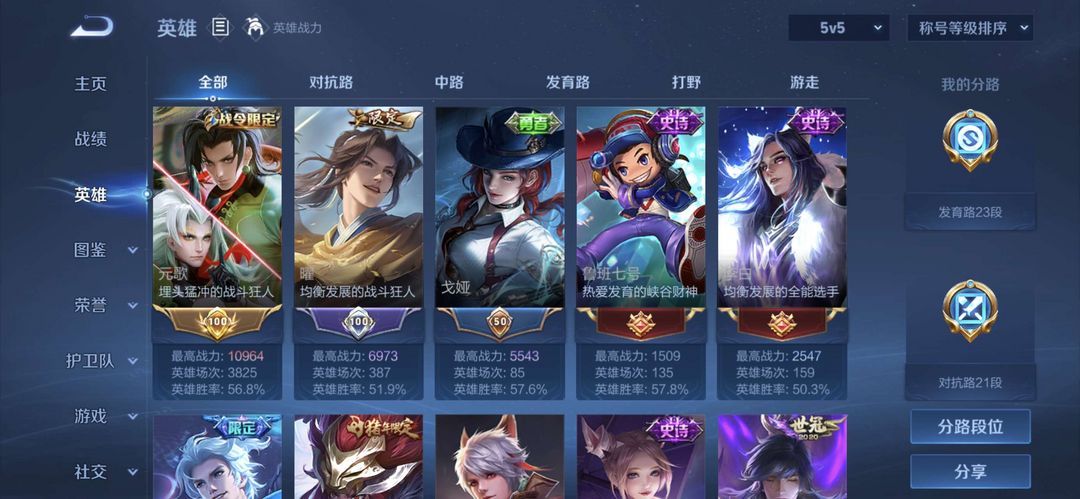 曾经万战金标元歌,元歌全皮肤,李白一个荣耀典藏,现在只是低分王者号,可用来带妹炸鱼。