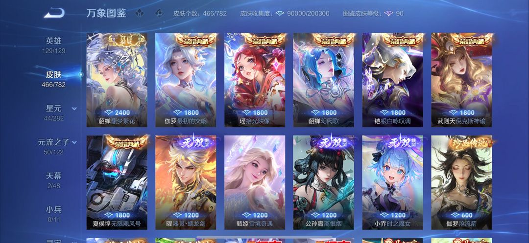 贵族10 貂蝉珍品无双 6典藏皮肤 4无双皮肤 5珍品传说皮肤