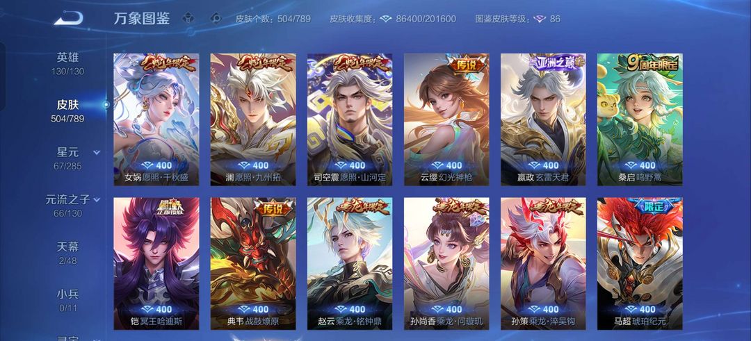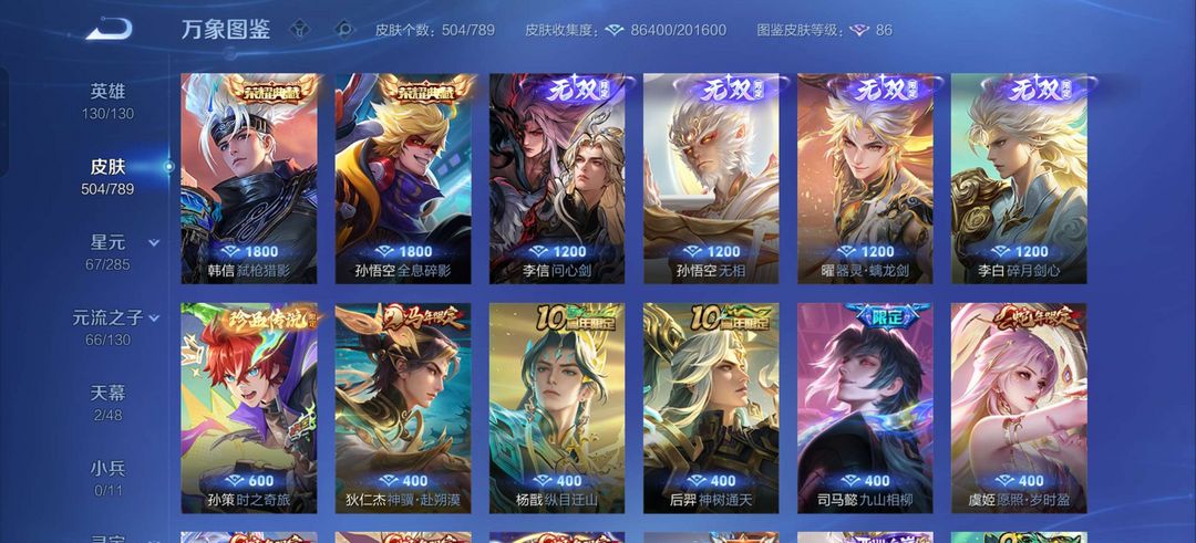 四个无双 白虎志 武陵仙君 神奇女侠 冥王哈迪斯 满级铭文 全英雄 贵族10