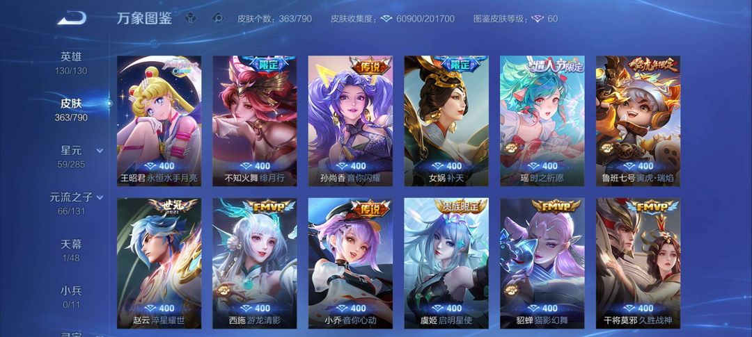 贵9,4典藏貂蝉,武则天,芈月,小乔,武则天全皮,妲己全皮,25传说,134限定