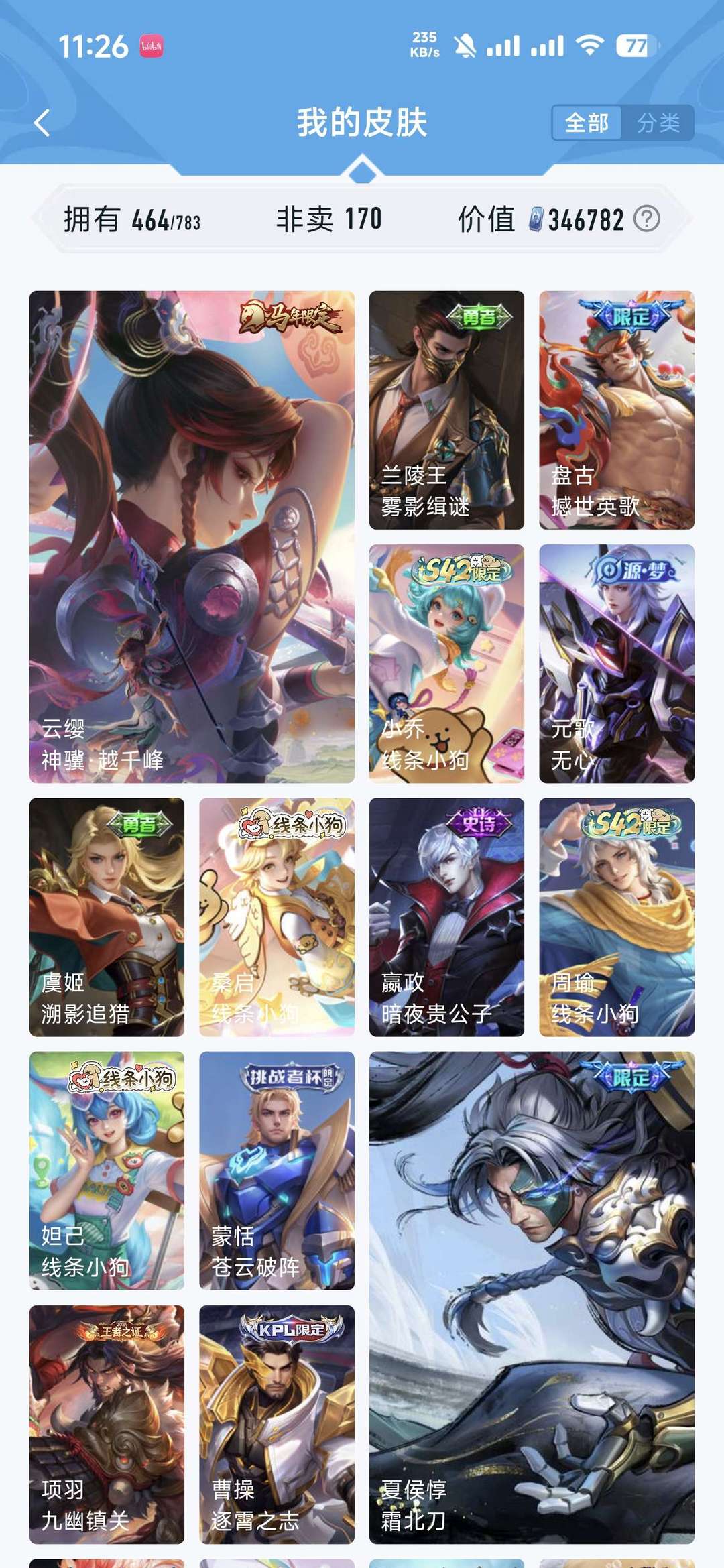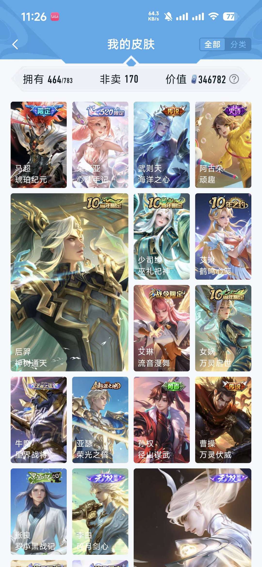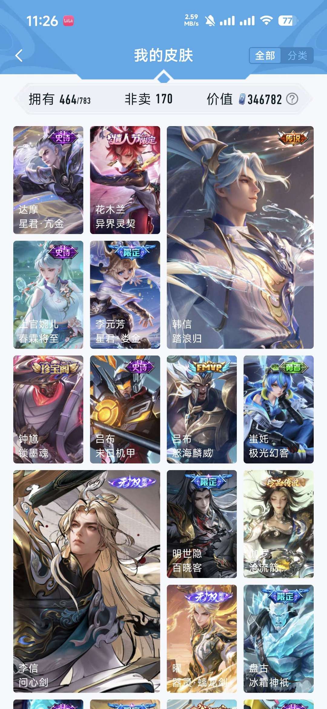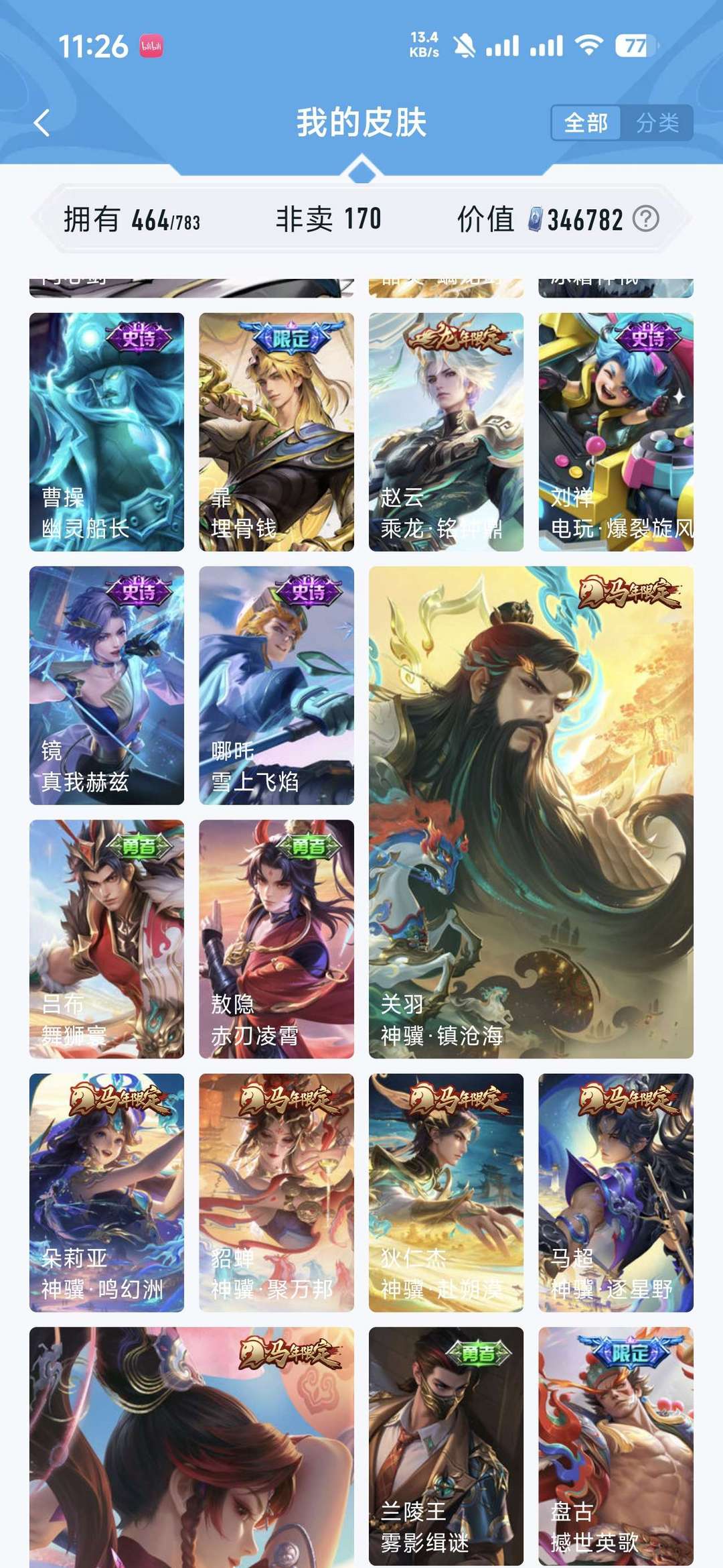 【V10 462皮】11无双 无双李信问心剑马年全万灵千山❤️全三丽鸥♥剑心离龙剑神罪雪境奇遇