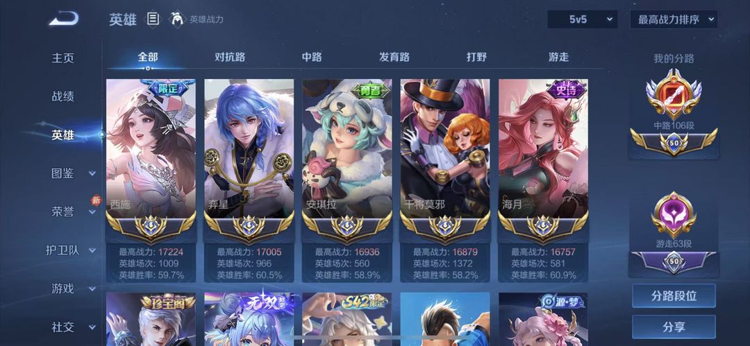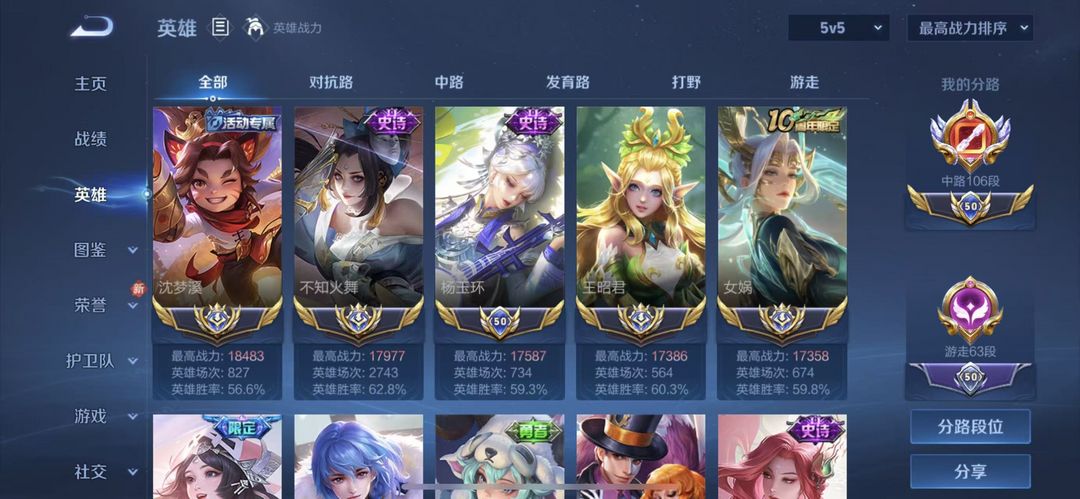 正式服在榜106段中路⭐历史1.8w战力十一国服火舞⭐超多省级限定皮肤⭐可排位