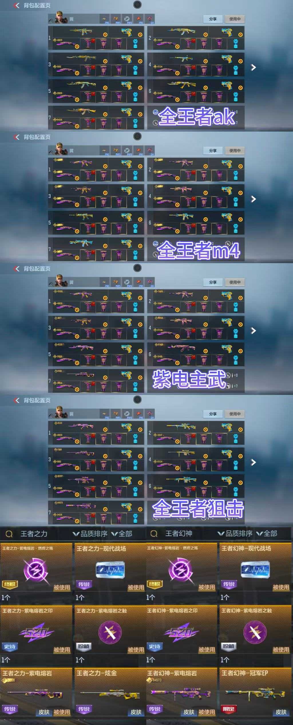 无敌排面✨紫电编号88!诛仙四剑✨流光彩莲✨兔兔战士✨王者之幻✨全7套7雷霆至尊7紫光紫翼紫电迹