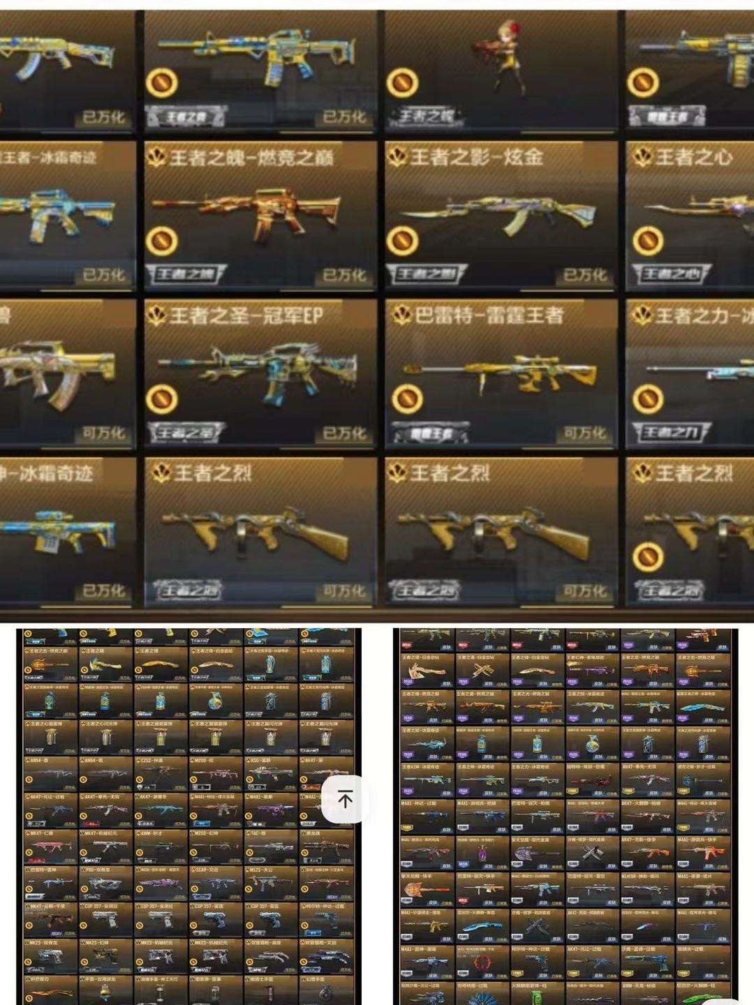 紫电幻神,熔岩皮,冠军ep皮,寒霜皮居多,一线武器王力,王幻,权,王者雷霆m4,王圣,王翼,王竟,王者雷霆狙,三国系列,星象,仲达,权,策,元让,奉先等等,威震天,螳螂,末日裁决者,金角巨兽,双脊龙等等....有快手限定皮肤多款...详细可看图片。特别声明;严禁开通外挂等辅助科技/分解枪械/等违规操作,法网恢恢疏而不漏,祝你游戏愉快。