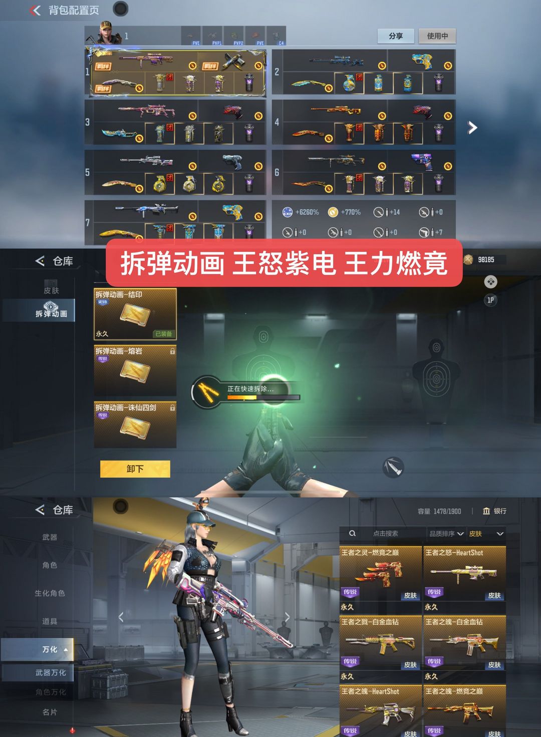 本游戏账号:英雄武器33个, 王者武器15个。军衔: 大元首,段位: 枪圣,拥有:葵,关小雨,云悠悠,等3个角色。装备齐全让你拥有完美游戏初体验,特殊装备有:王者之迹、王者之魄、MK23-幻神、M4A1-星象、AK47-孟德、高爆手雷-雷霆王者、MK47-仁德、黑武士手雷、王者之心烟雾弹、烟雾弹-雷霆王者、王者之掣、王者之神、王者之烈、墨刃-幻神、M200-幻神、王者幻神、VEPR12-本初、MK47-机械纪元、闪光弹-雷霆王者、王者之翼闪光弹、98K-黑骑士、巴雷特-枪娘、巴雷特-雷霆、98K-星神、M12S-雷霆王者、王者之心、王者之怒、王者之力-HeartShot、王者之影烟雾弹-HeartShot、王者之影闪光弹-HeartShot、关小雨、云悠悠、等,随意畅选。