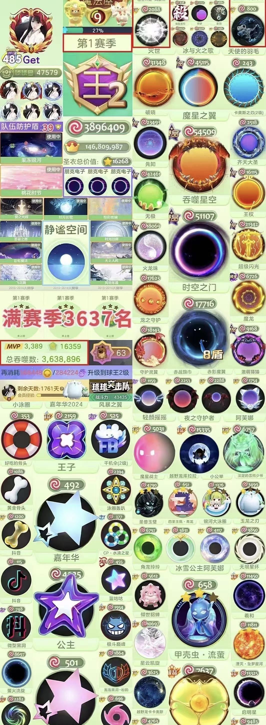 满赛季3637名❤️静谧空间【❤️双嘉年华★二级阿芙娜★十字架甲壳虫★王子公主★鲨暖暖★39盾❤️】