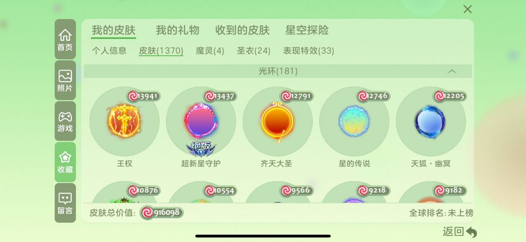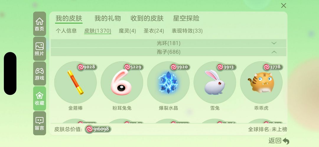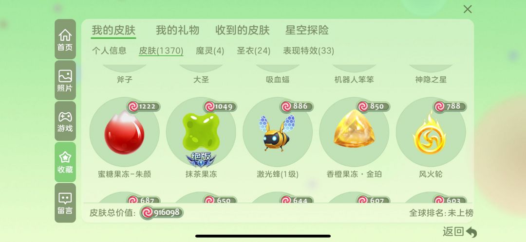 【239秀仙1+齐天大圣王权+加大白甲壳虫+抹茶水滴】91万皮/齐天大圣王权/星的传说/甲壳