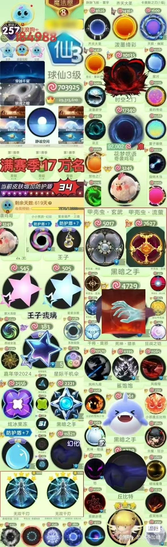 万名顶配❤满赛季❤静谧六级王子公主❤顶级人手❤鲨饱饱❤满级丘比特❤星际千机伞