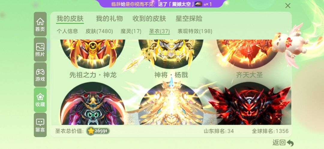 账号数据全,稀有皮肤、圣衣、魔灵都有,具体看图! 恶意撤单直接拉黑!!!毁号行为涉及毁坏虚拟财产罪及计算机安全罪,请文明游戏素质游戏,让我们共建美好租号平台!