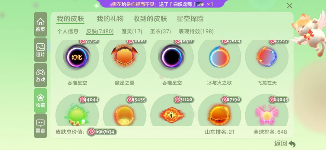 688秀高秀皇飞龙 近700万皮肤价值王子公主全套 璀璨骨头泳圈阿福娜 满级魔王 冰龙