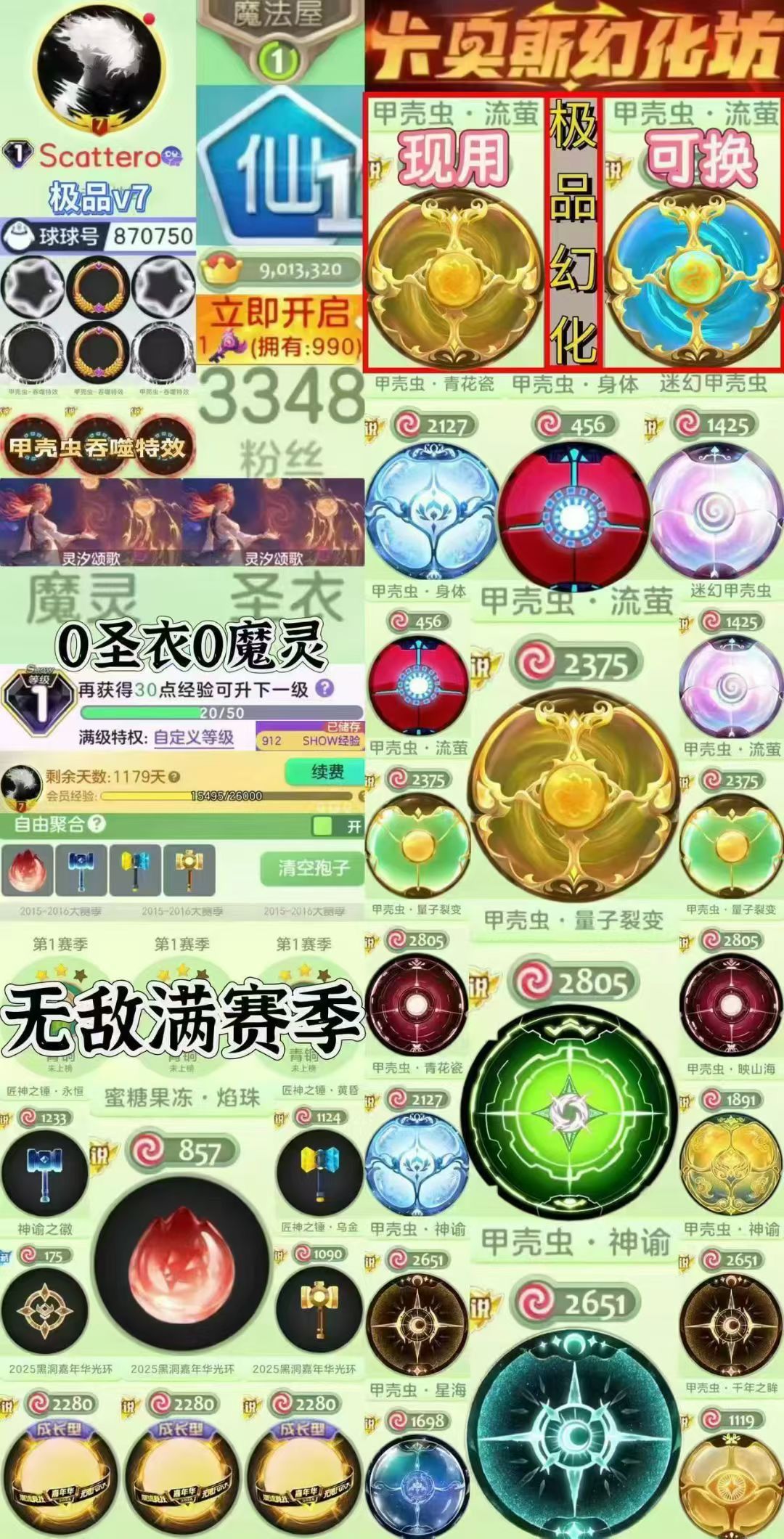 满赛季15万排名号1秀千天年卡【甲壳虫大满贯幻化十字架漩涡甲壳虫*幻化神谕甲壳虫*幻化量子甲壳虫*】
