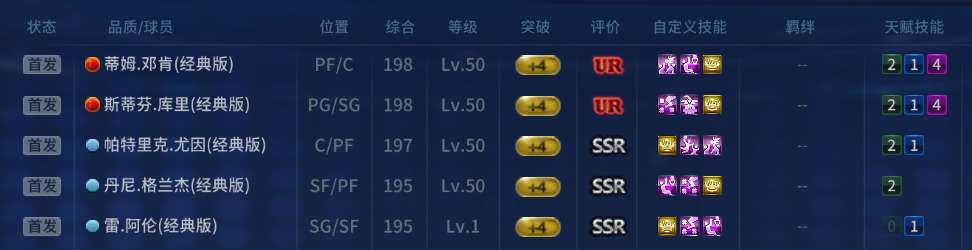 顶级7内线组 全新UR邓肯❤UR库里❤SSR尤因SSR雷阿伦SSR格兰杰