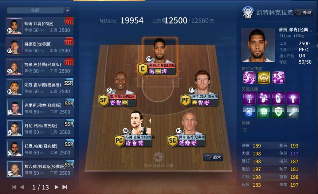 最新最强幻神UR经典版邓肯➕雷阿伦➕巴特勒➕易建联➕SSR基德➕吉诺比利帕克❤️全十SF包全大翅膀