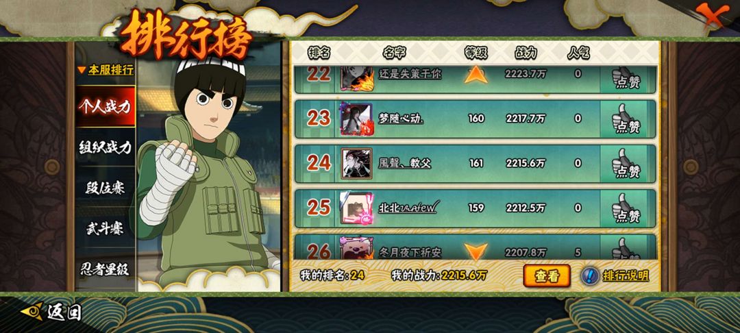 2215万战力,36s忍,51a,1253区一组首领,排名24