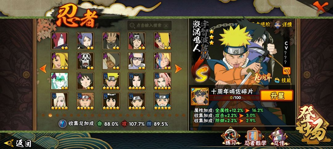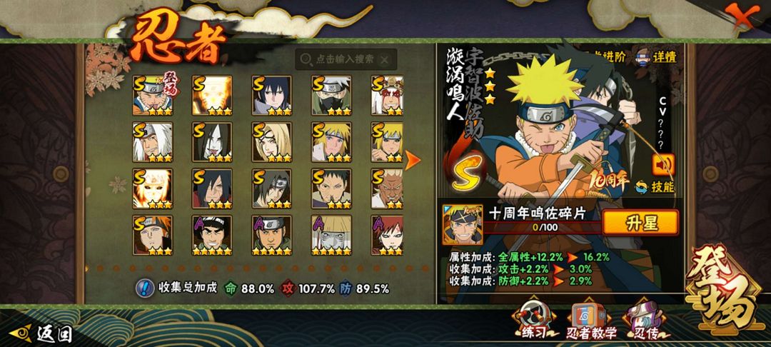 传说自来也,忍战小李,忍战雷影,死水,须佐卡卡西,秽土再不斩,主区是卷轴蛤蟆