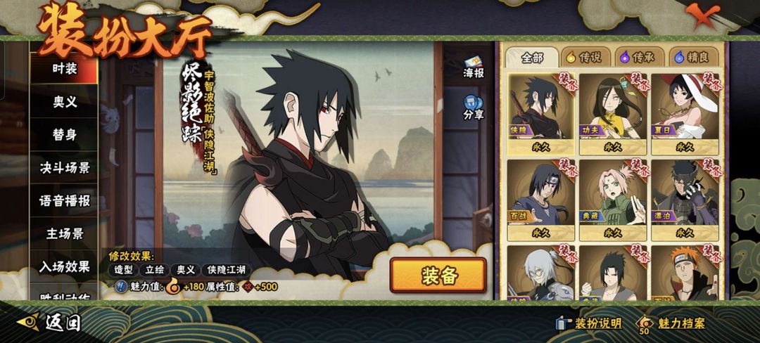 侠隐佐助已出!超值!40S忍 ,主流高强度S忍齐全。A忍基本都有:80个,超多点券忍者以及祈愿宝库忍者,3000W战力老号。适合新手体验,高手排位。熊猫,新通灵六尾犀犬,新春守鹤等等一应俱全,霸体12级,决斗场该有的全有。