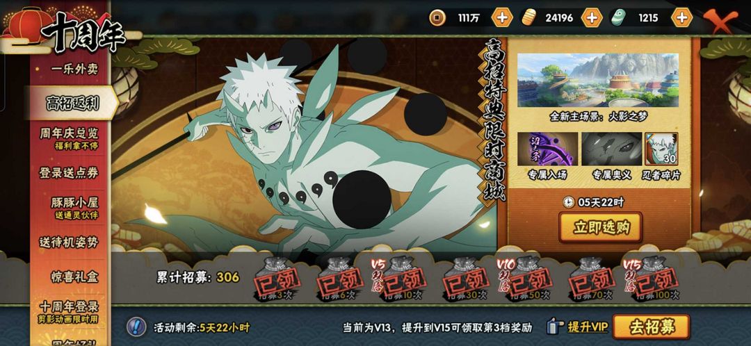 十尾带土☀️3500W战☀️56满S✨全忍者☀️新春水门✨恶灵飞段新春鼬黑绝✨薄纱3