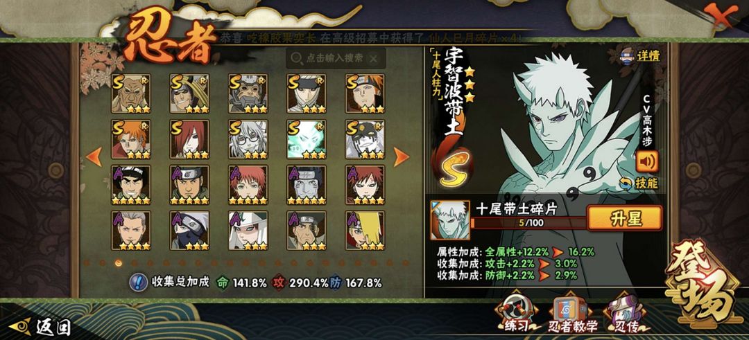 十尾带土⚜️五影斑♋全高招S ♋九喇嘛水门⚜️2261w战力