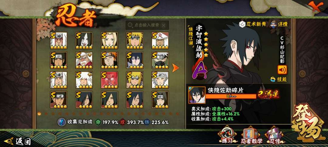 ✨五星侠隐佐助全套✨五影斑✨全忍者✨漂泊带土✨九尾水门✨150团瞬秒✨4260万战力✨麻烦好评一下