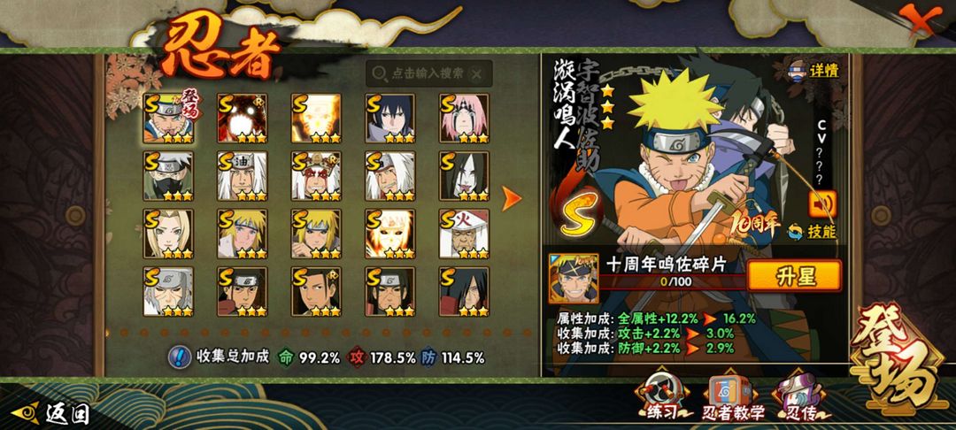33S43A白面具漩涡鸣人九喇嘛,忍战带土,白面具,须佐止水,青年水门,青年艾,1500万战力