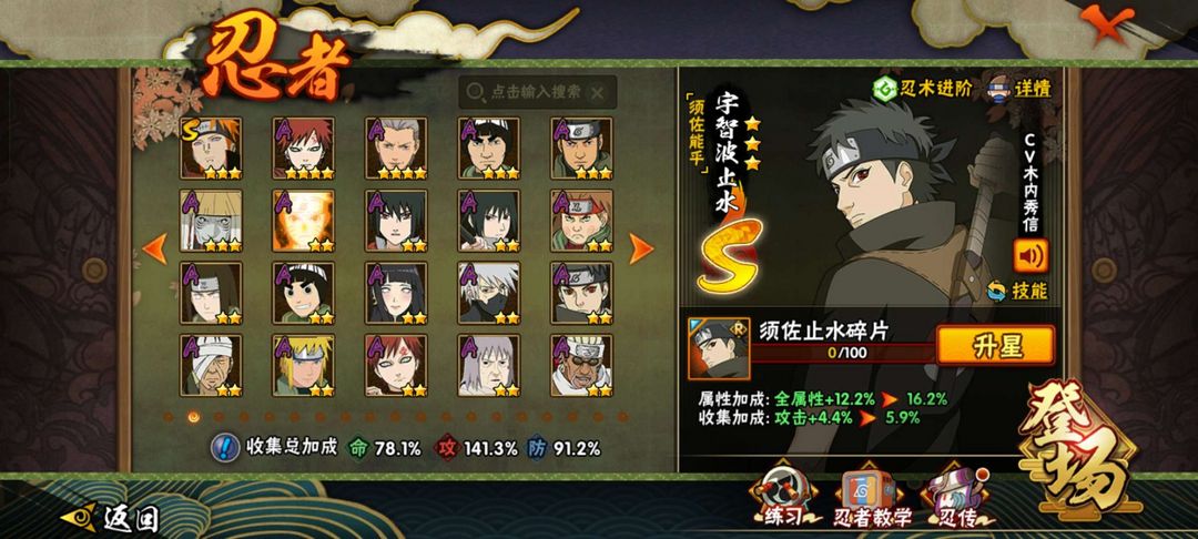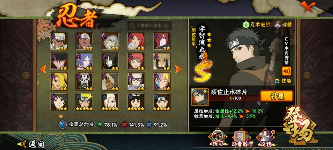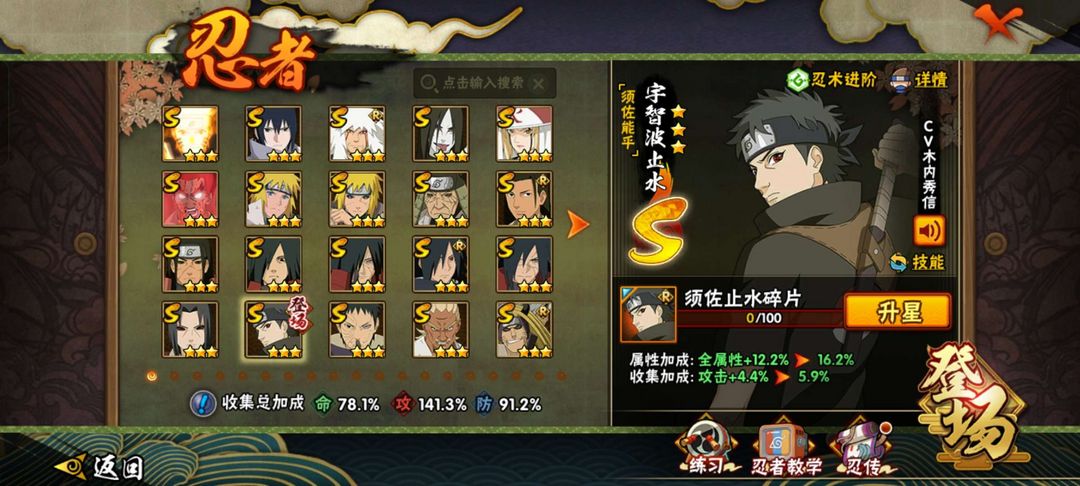 漂泊带土,须佐卡卡西,须佐止水,忍战雷影,解班,永恒佐助,忍界带土,九尾鸣人,木叶班,木叶柱间,等