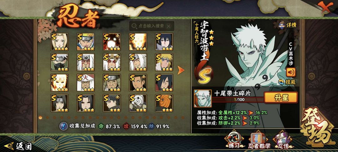⭐白面解斑⭐九喇嘛⭐忍战带土⭐红夜带土⭐创立柱间⭐漂泊小南⭐侠影纲手⭐紫狗⭐宁次长十郎青水博人⭐战力71
