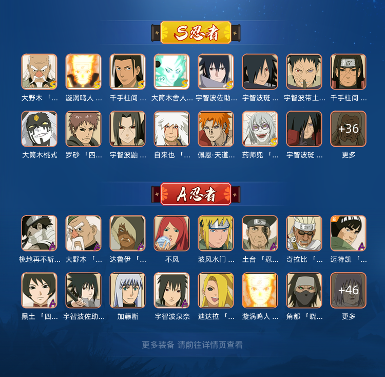 火影忍者手游200多个忍者,2000万战力,50s,侠影佐助已买。