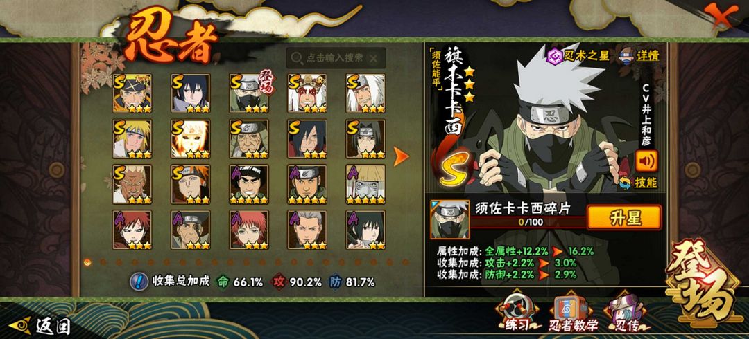 12S32A须佐卡卡西 忍战雷影 暴怒带土 九喇嘛水门 秽土解斑 永恒佐助 忍战李 传说自来也