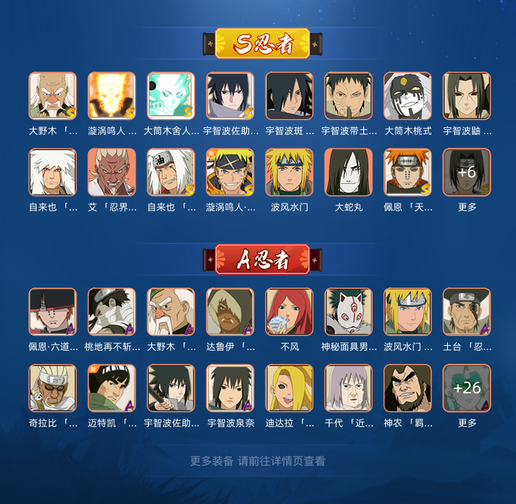 忍战带土 面麻 漂泊佩恩 桃式 忍战大野木 创立斑 小樱 永恒佐助 黄猿 老三代 须佐卡卡西 漂泊带土 舍人 百战须佐鼬 三忍自来也 百战天道