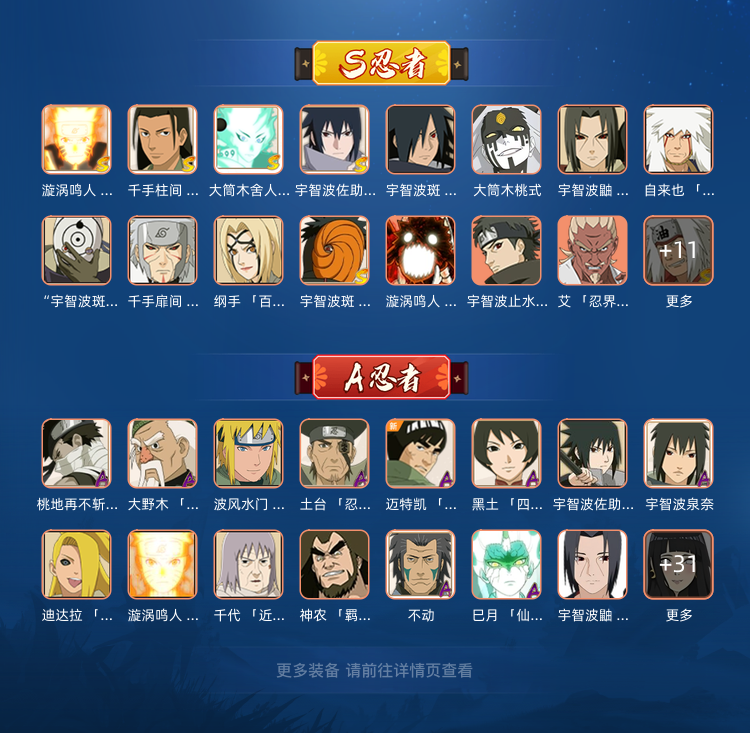 22S 36A忍战雷影 白面具 百豪纲手 死长门 创立柱间 桃式 永恒佐助 解斑 天道佩恩