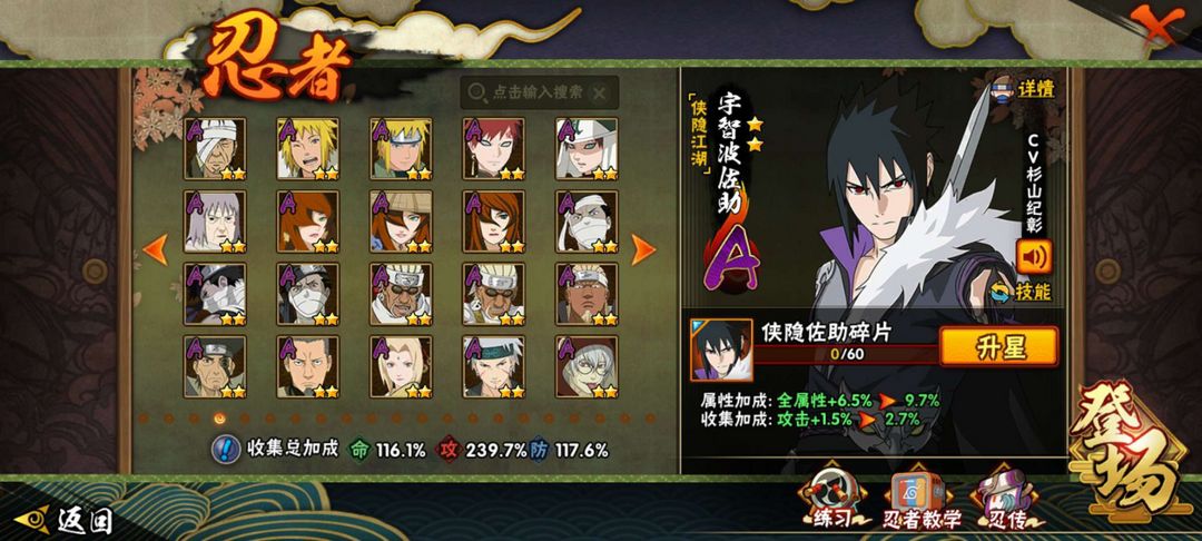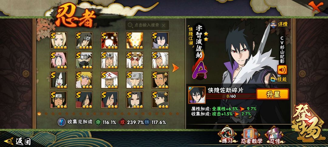 33s✨78a✨侠影佐助黑绝漂泊带土机器鸣人最新忍者全都有1800w战力,带150团本以下毫无压力