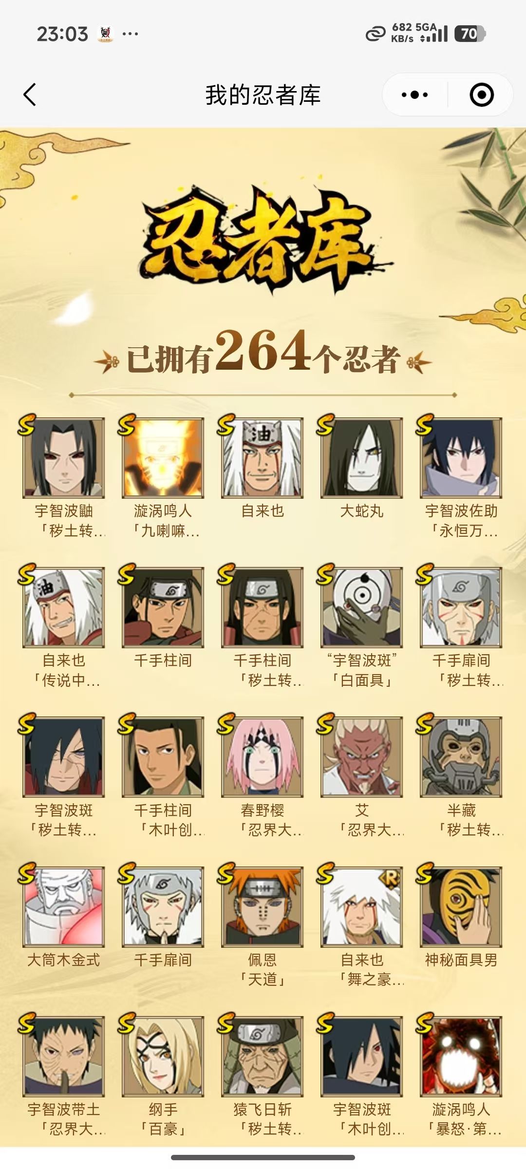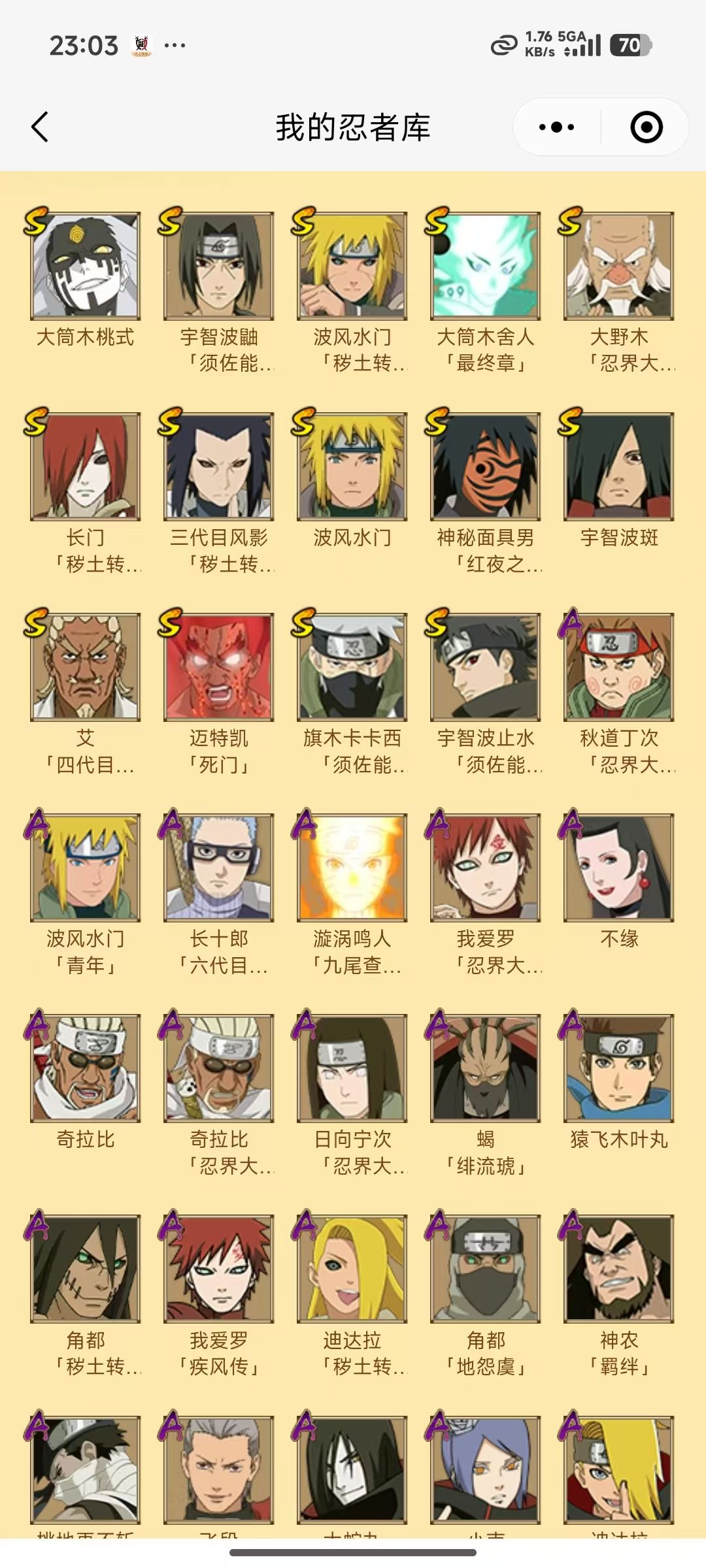 大蛇丸;艾 「忍界大战」;宇智波鼬 「秽土转生」;宇智波斑;自来也 「传说中的三忍」;千手扉间 「秽土转生」