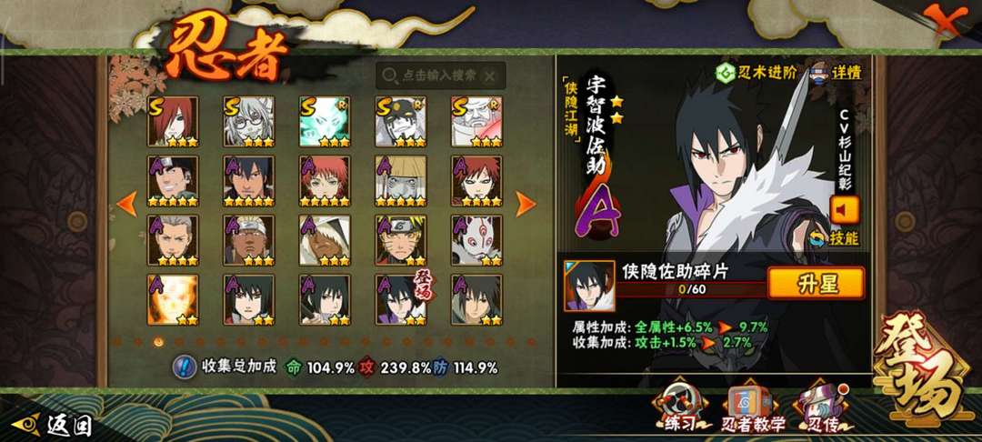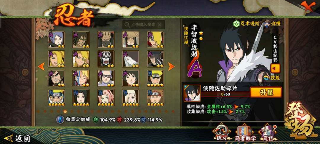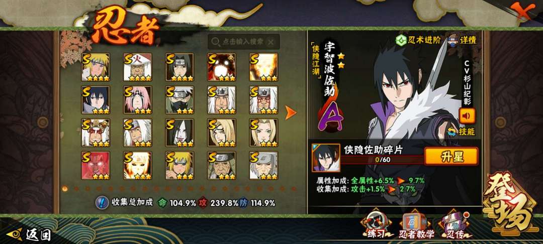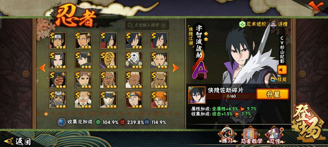 45s,49a,新高招已出,仅前两忍法帖未出,漂泊系列a仅差小南,侠隐佐助,忍战凯,漂泊带土
