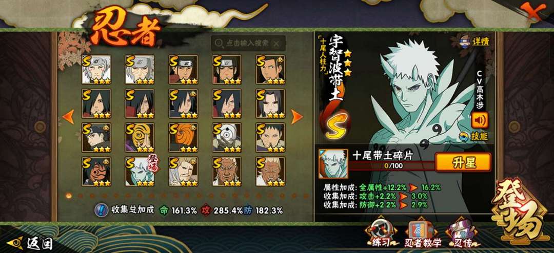 48s➕60a,全密卷+熊猫,v13➕2000w战➕45级魅力,十尾带土,鸡翅佐助,暴怒小孩