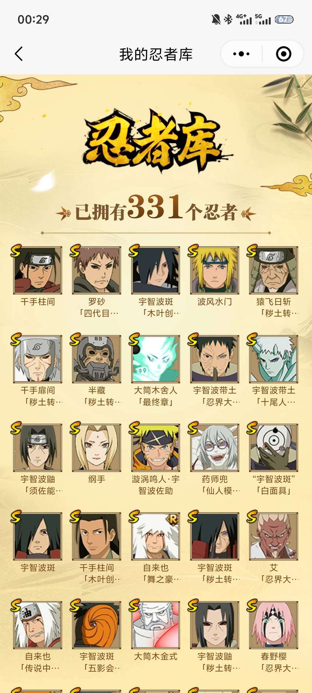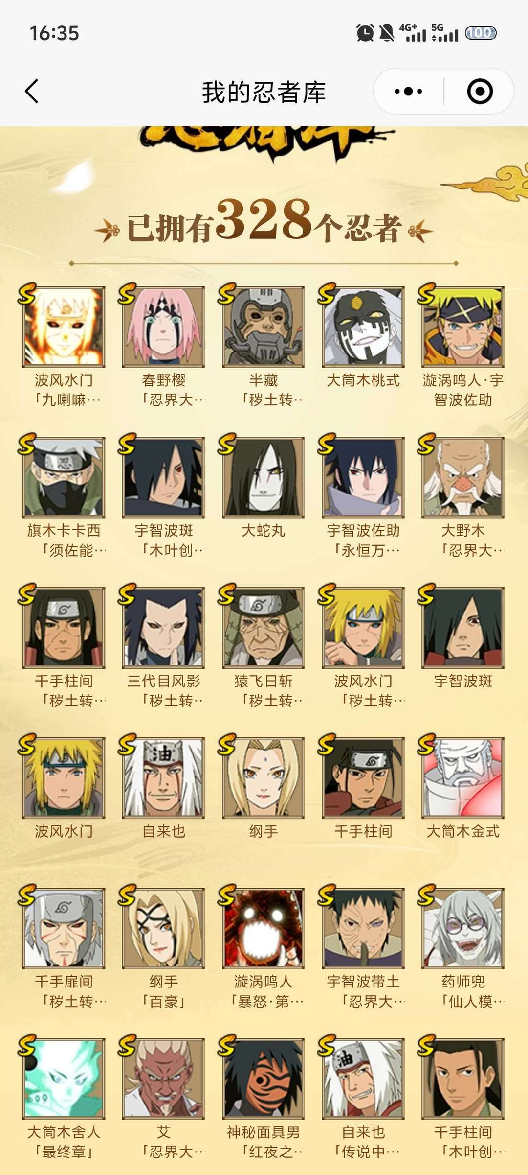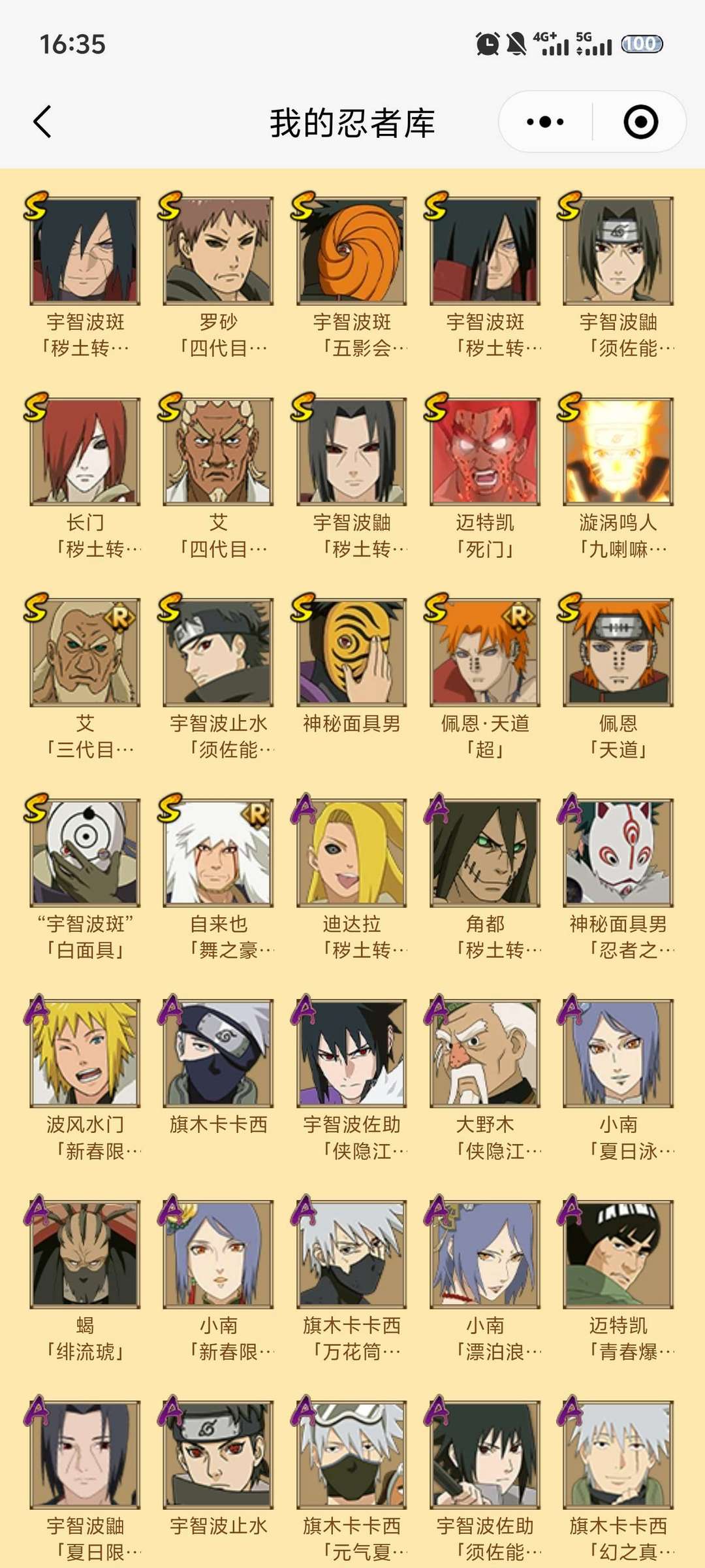 六道带土已出48S,78A,熊猫,螃蟹,变色龙,万蛇都有