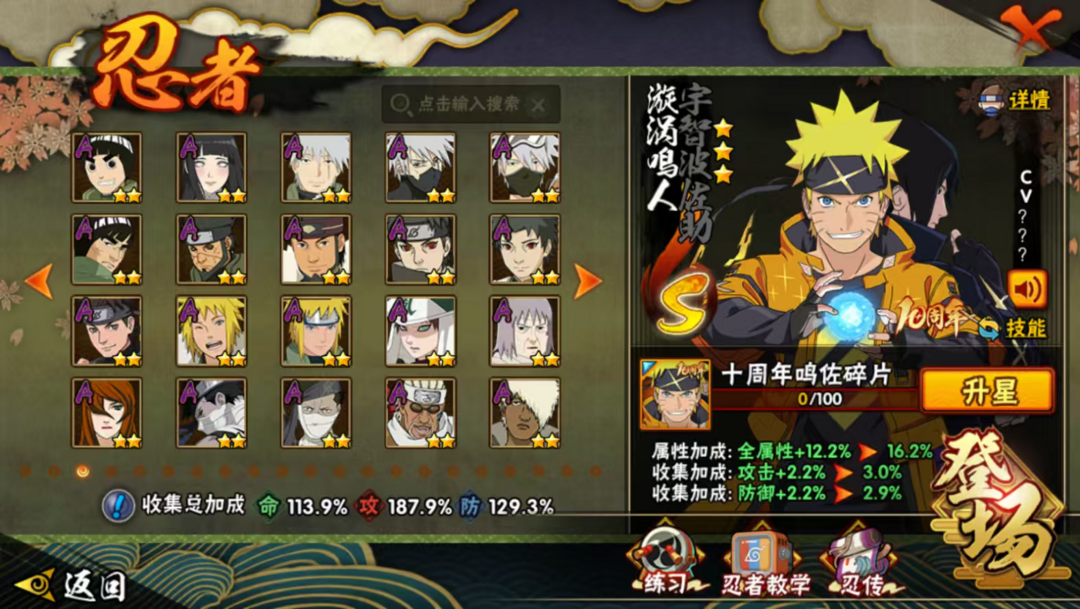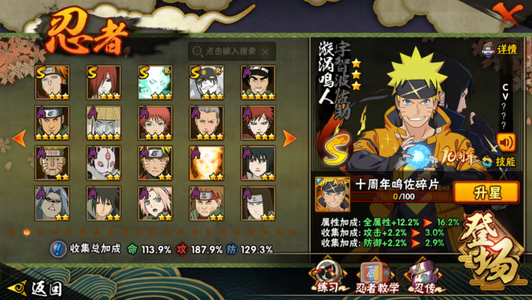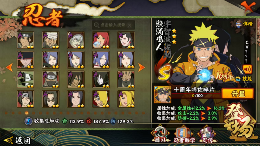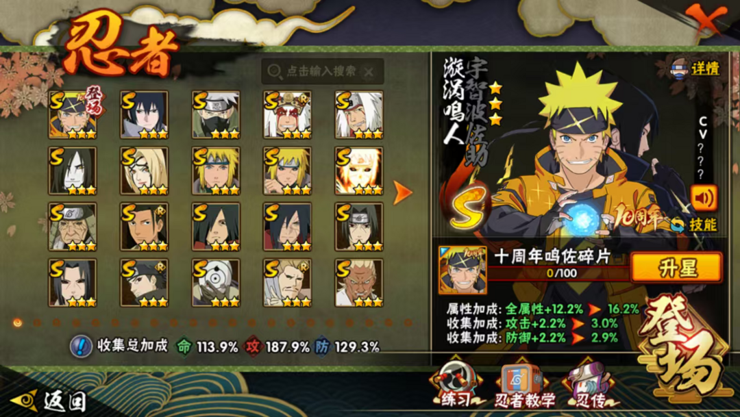 23s,60a,280忍,创立柱间,须佐止水,小胡子,熊猫,螃蟹,多198