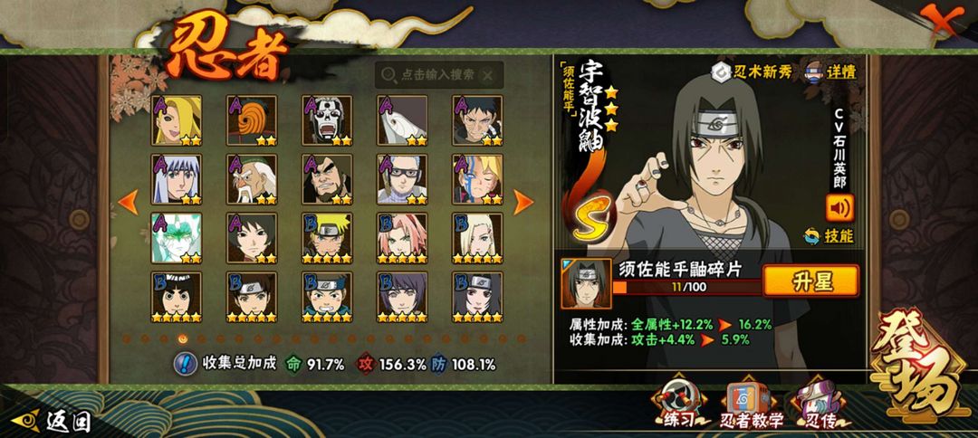 A级很多可以打段位漂泊带土九喇叭永恒佐助等