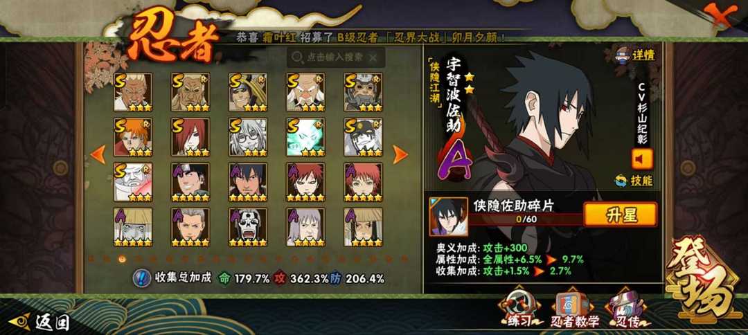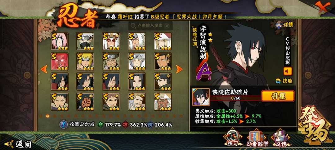 【安卓273区】该账号有直购通灵熊猫,二尾等。2000万战斗力S忍者:忍战小樱,大筒木金式,九喇嘛鸣人,木叶创立斑,死门凯,忍战带土,罗砂,秽土柱间,秽土鼬,天道超,仙人兜,三代雷影艾,秽土斑,仙人自来也,纲手,自来也,大蛇丸,百豪纲手,水门,秽土四代,三代,秽土三代,二代,秽土二代,初代,斑,须鼬,面具男,白面具,鬼灯幻月,雷影,金角银角,半藏,无,佩恩,长门等42S。A忍:青年长门,青年艾,博人传达鲁伊,青年水门,博人传黑土,暴怒带土,须佐能乎佐助,秽土迪达拉,武士再不斩,新春水门,泳装小南,新春鼬,秽土阿斯玛,地陆,猿飞木叶丸,九尾鸣人,半蛇斗篷药师兜,忍战勘九郎,年轻三代,晓创生角都,忍战我爱罗,近松十人卫千代等40个热门A级忍者。B忍:面点天天,和服花火,泳装李洛克,泳装雏田,忍战牙,忍战志乃,圣诞雏田等各种热门B忍,还有各种C级忍者,白菜价出租,喜欢可以收藏,谢谢配合