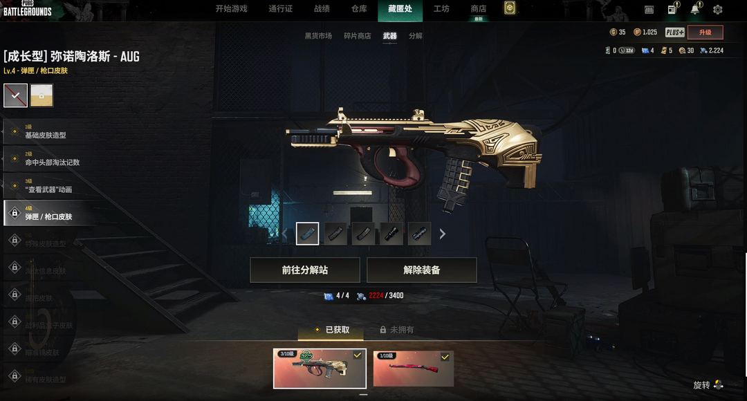 【AUG4级+98K+魔力MK12+红烟+金面+白熊套+发光手臂】还有载具皮肤
